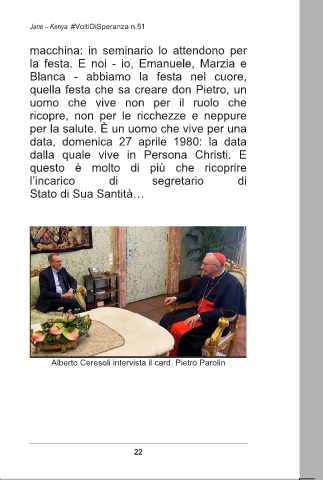 Alberto Ceresoli intervista il card. Pietro Parolin partenze le offro un cappuccino e le dico: