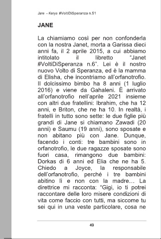questi soldi conservati con parsimonia, con la nostra Janet, morta a Garissa dieci