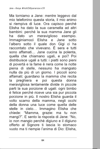 chiede: “Mamma, grazie: ma tu non aspetta? Stammi bene: Jambo