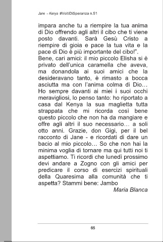 chiede: “Mamma, grazie: ma tu non aspetta? Stammi bene: Jambo