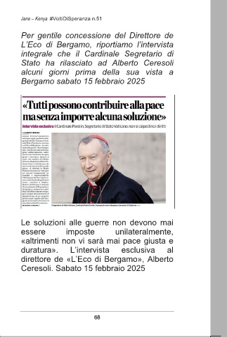 L’Eco di Bergamo, riportiamo l’intervista dell’anno, la tregua nel conflitto