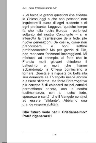 attenzione e più spazio». testimonianza, con la nostra fede,
