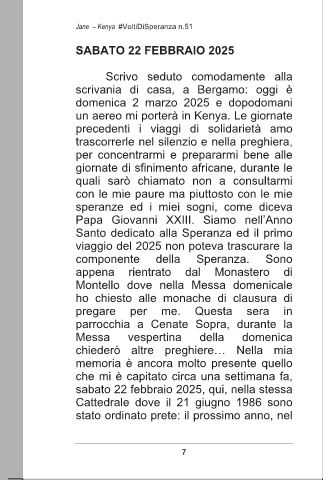 questo nuovo esempio di carità e che sabato 22 febbraio 2025, qui, nella stessa
