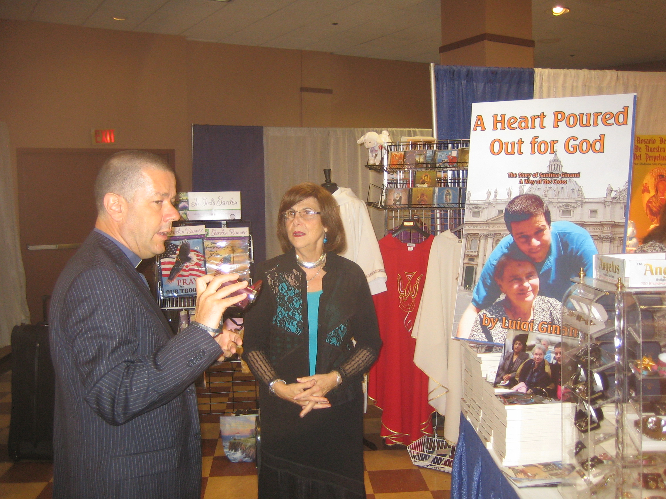 One of the best points of my trip in the States is a contract with ANGELUS MEDIA DISTRIBUTION GROUP for a new edition of the book God is the Rock of my Heart with the new tiltle: A HEART POURED OUT FOR GOD for the convention inPhiladelfia of 3th-5th of August 2010 . Maria and Dick Incremona are so good with me, and I want Thank you for the wonderfull opportunity that They give me. They were present more the 315 catholic stores and pubblischerThis week (August 3-6th) Publisher Incremonaexecutives are scheduled to attend the 2010 Catholic Marketing Network International Trade Show held at the Valley Forge Convention Center in King of Prussia, PA. The CMN Trade Show is a wholesale trade event for suppliers and retailers of Catholic/Christian books,music, videos, jewelry, art, statuary, religious articles and more. This annual event is an opportunity for publishers, manufacturers and distributors to directly showcase their products to  the gatekeepers of one of the largest markets in the world. . The Catholic Marketing Network was founded in 1996. The decision to start the Catholic Marketing Network was prompted by years of discussions between Catholic professionals involved in a wide variety of activities related to the distribution of Catholic materials. Some were owners of Catholic gift and book stores, others were involved in publishing of Catholic books and music or producing Catholic materials such as jewelry, statuary, or art. There was a common agreement that there was no professional organization in existence that offered the opportunity for all of these diverse entities and individuals to come together for the purpose of making others aware of their activities, exchange information, network among each other and work together towards a common goal. The Catholic Marketing Network was founded to fill this void.