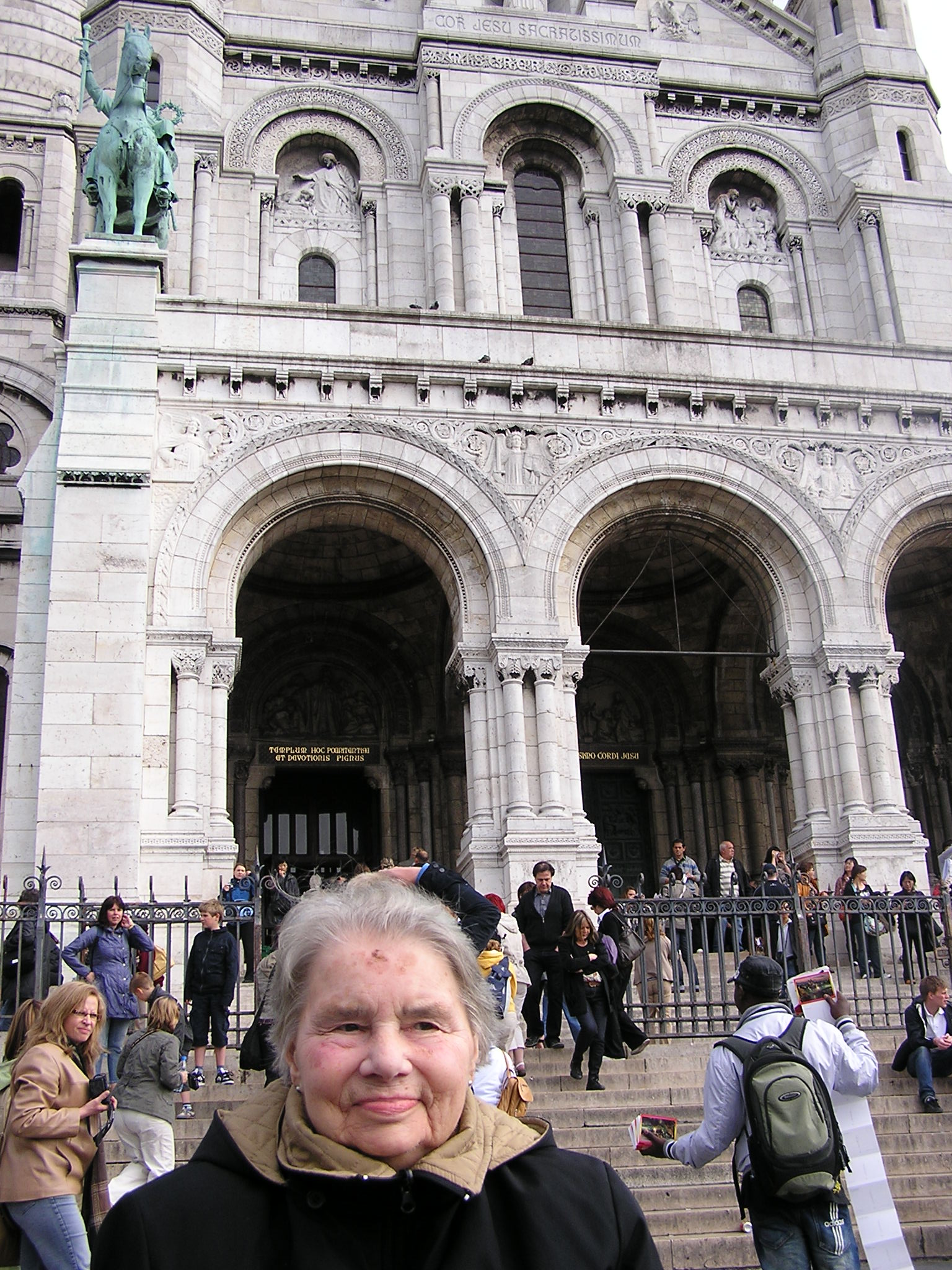 Siamo a Parigi e con lo scopo principale di venerare il grande Santuario del Sacre Coeur a Montmartre. La nostra visita è breve, ma abbiamo intenzione di compiere tre tappe: la Basilica di Montmartre, la Tour Eiffel, e la Cattedrale di Notre Dame con la Senna. Sono giornate brevi, ma intense.Le suore benedettine della comunità Benedectines de Montmartre, Saint Efrem, ci accolgono con grande ospitalità. Santina è un po’ stanca e purtroppo la coglie un conato di vomito che intristisce un po’ la nostra serata. Ma poi mia Madre prontamente si riprende con un gran sorrisone e nella serenità e quiete della sera andiamo a dormire, fuori centinaia di turisti sono giunti per gustare la meravigliosa vista di Parigi  che lo spiazzo della Basilica offre:(cfr.