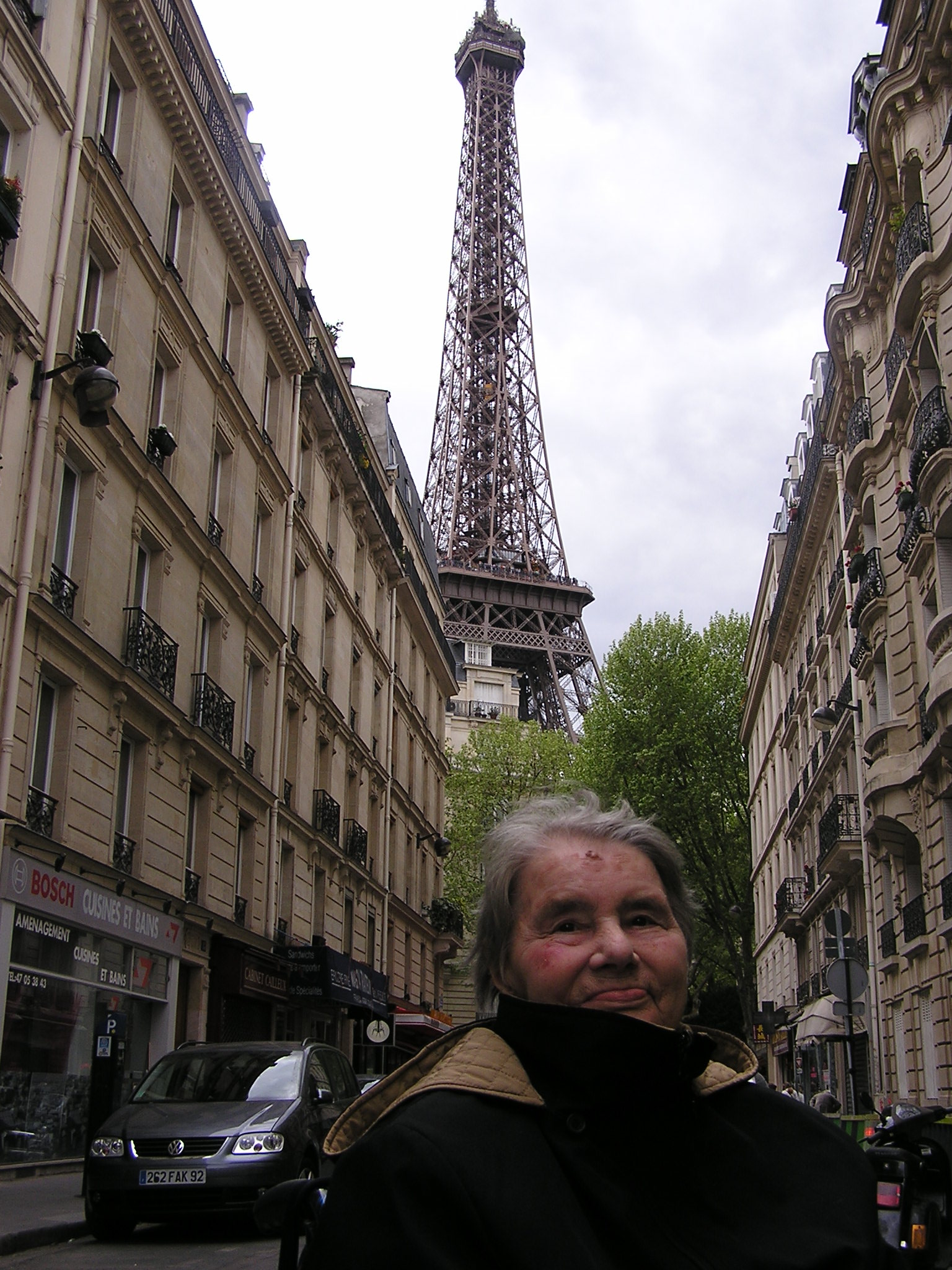 Il pomeriggio, di sabato 1° maggio, prendiamo la nostra auto e ci dirigiamo al centro di Parigi, attraversiamo la Senna e giungiamo nei pressi del grande monumento. ) Siamo tutti e tre molto euforici: giungere a Parigi non era minimamente immaginabile nel 2005, quando con molta paura portai mamma al mare di Marina di Massa e mi sembrò già quello un grande successo… figuriamoci giungere a Parigi. Mamma sorride compiaciuta e guarda con molta curiosità le strade della metropoli, ascolta le voci in francese, appare divertita, come anche Olinda. Sono questi dei momenti che riempiono di entusiasmo la vita e danno grande carica per vivere poi il quotidiano. Parcheggiamo la mitica Rav4 ed iniziamo la nostra passeggiata a piedi che ci condurrà fino alla torre.Abbiamo paura di esserci persi, domandiamo informazioni e finalmente, da una delle strade laterali scorgiamo per la prima volta l’altissima torre, che emozione! Guarda Santina quanto è alta! E Mamma esclama: “E’ altissima!” Le regalo un bacio sulla fronte. Acceleriamo il passo.