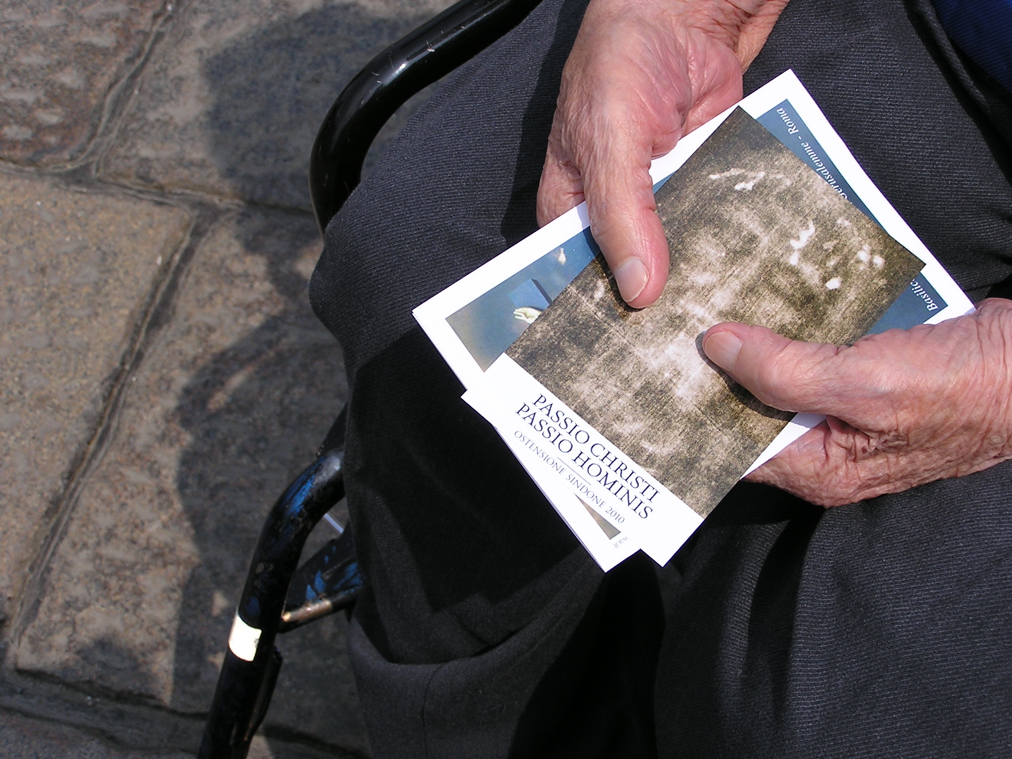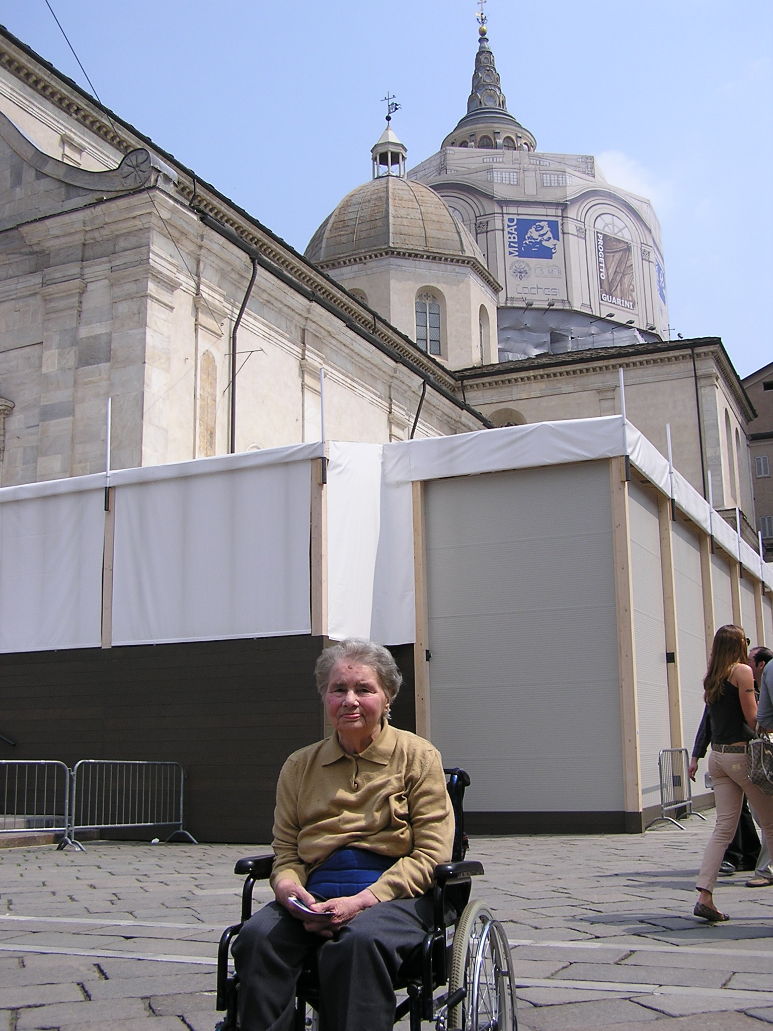 Questa visita a Torino è stata per noi una sorta di preparazione al Pellegrinaggio a Gerusalemme che avremmo svolto dal 3 al 10 Giugno 2010. Guardiamo il seguente breve video per prepararci alla lettura: Venerare devotamente quel Sacro Lenzuolo è stata la nostra preparazione remota al cammino della Via Crucis svolto poi con Mamma per le strade di Gerusalemme. Il duomo era gremito di moltissime persone venute da ogni parte d’Italia a pregare davanti a quel telo che racconta la Passione di Gesù. Santina aveva già visto la reliquia, ma era la prima volta che giungeva lì dopo aver sopportato la sua dura passione i cui segni permangono e sono ancora visibili. Il Papa parla del sabato santo, del silenzio di Dio, di un vuoto nel cuore… Quante volte ho interrogato Dio sulla Passione di Santina, sulla Passio Hominis che Lei ha vissuto nel suo corpo. Davanti alle sofferenze della terapia intensiva, davanti alla piaga di decubito, davanti ai tubi infilati in gola, davanti al dolore acido e cattivo, mi sono chiesto molte volte: ma Dio non parla? Ma questa donna schiacciata dalla sua sofferenza cosa significa per me: cosa significa Santina che richiede vicino a se un’altra vita 24 ore su 24, quella di Olinda e chiede vita e sacrificio a ciascuno di noi, ma ne vale la pena? E’ una vita inutile! Sto sbagliando tutto? Nessuno più è vicino, forse la storia di Mamma non interessa più, oppure io non sono più capace di farla parlare, forse la stanchezza giunge in me, in Olinda, in Carolina. Guardo il Sacro Telo, guardo Mamma e Olinda…