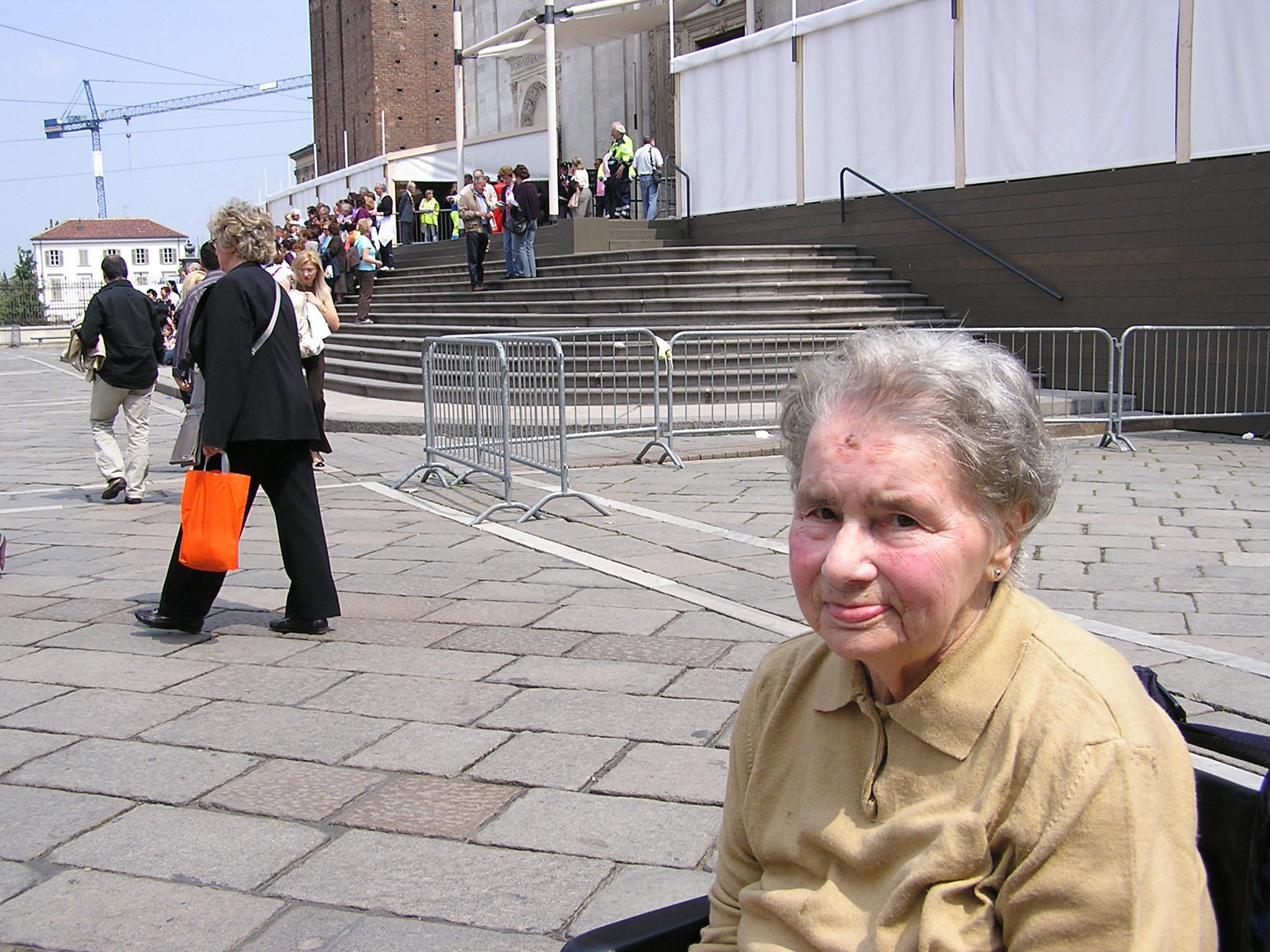 E’ la prima tappa del nostro pellegrinaggio, per alcuni aspetti la più suggestiva e certamente il cuore del viaggio. Guardo Santina sostare in silenzio davanti alla reliquia, è una scena molto forte per me perché la Passione di Cristo sembra incontrare la Passione di Santina., la Passione dell’uomo e le sue sofferenze. Dal 2005 mi interrogo ogni giorno su questa esperienza, ed ogni giorno nelle preghiere con Santina, nel chiamarla al telefono e nel vederla con Skype contemplo una donna che vive in un’altra dimensione, assorta in Dio nella sua contemplazione, nella preghiera e nella penitenza di una vita che sembra non essere più vita.