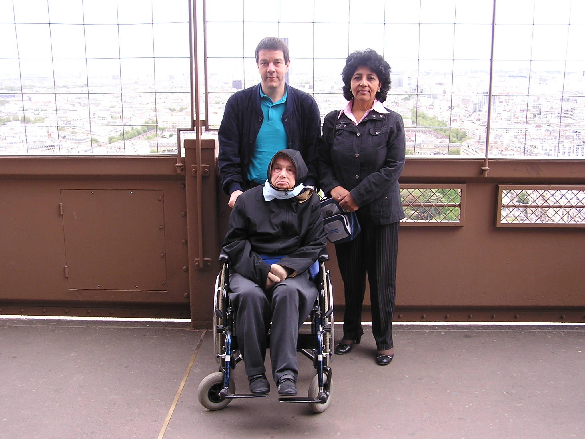 La giornata non è tra le più belle e vogliamo sicuramente salire fino a dove è possibile giungere un disabile. Chiediamo nuovamente informazioni, acquistiamo i biglietti e entriamo nella folla che sale sull’ascensore.La Torre Eiffel è il monumento più famoso di Parigi ed è conosciuta in tutto il mondo come simbolo della città stessa e della Francia. Fu chiamata così dal nome del suo progettista, l’ingegnere Gustave Eiffel, che costruì anche la struttura interna della Statua della libertà. È visitata mediamente ogni anno da cinque milioni e mezzo di turisti. La sua manutenzione è curata dalla Societé Nouvelle d’Exploitation de la Tour Eiffel. La struttura, che con i suoi 324 metri di altezza è la più alta di Parigi, venne costruita in meno di due anni, dal 1887 al 1889; sarebbe dovuta servire da entrata all’Esposizione Universale del 1889, una Fiera Mondiale organizzata per celebrare il centenario della Rivoluzione francese. Inaugurata il 31 marzo del 1889, venne ufficialmente aperta il 6 maggio dello stesso anno. Trecento metalmeccanici assemblarono i 18.038 pezzi di ferro forgiato, utilizzando mezzo milione di bulloni (che furono sostituiti, durante la costruzione stessa, con rivetti incandescenti).