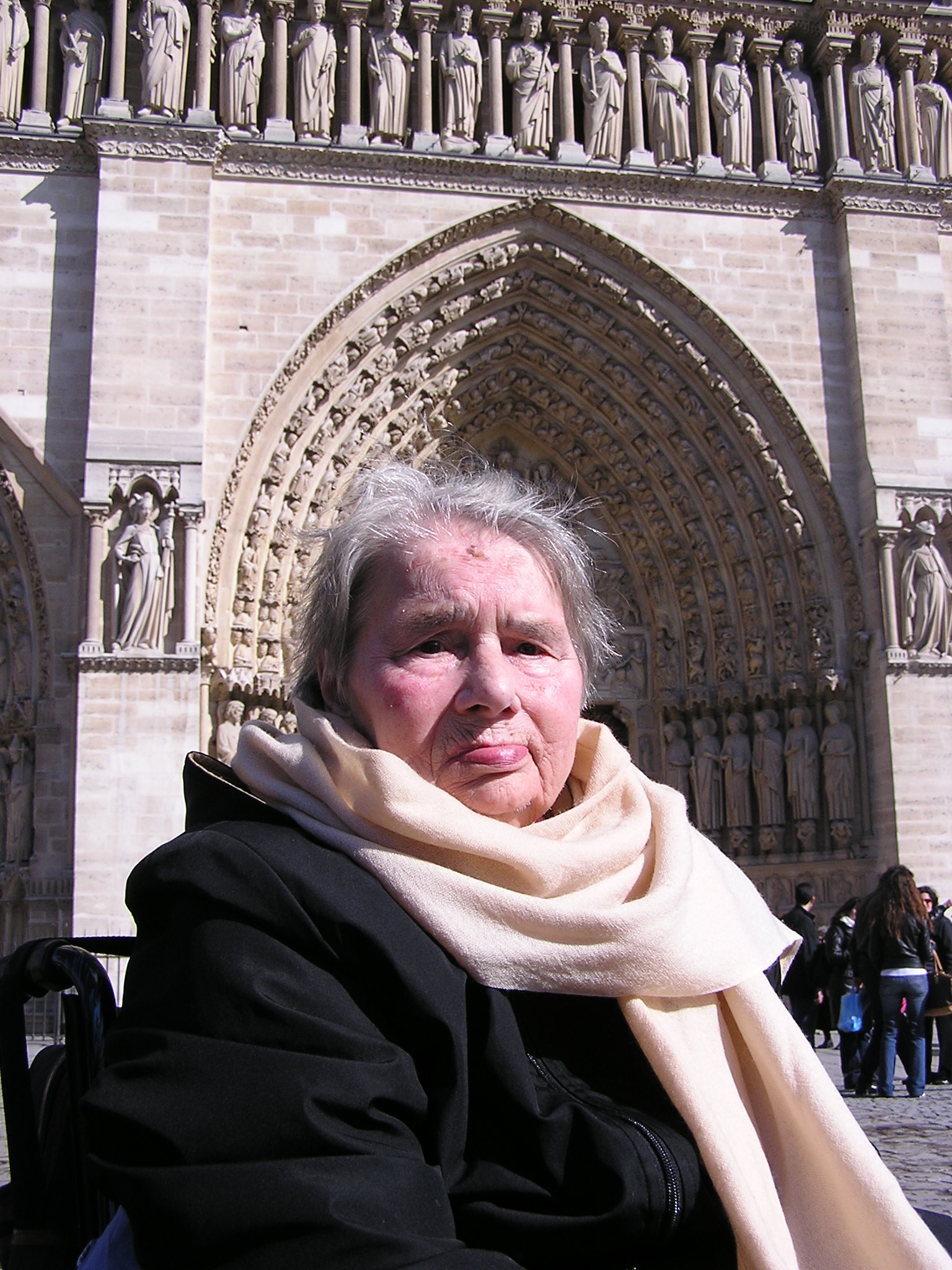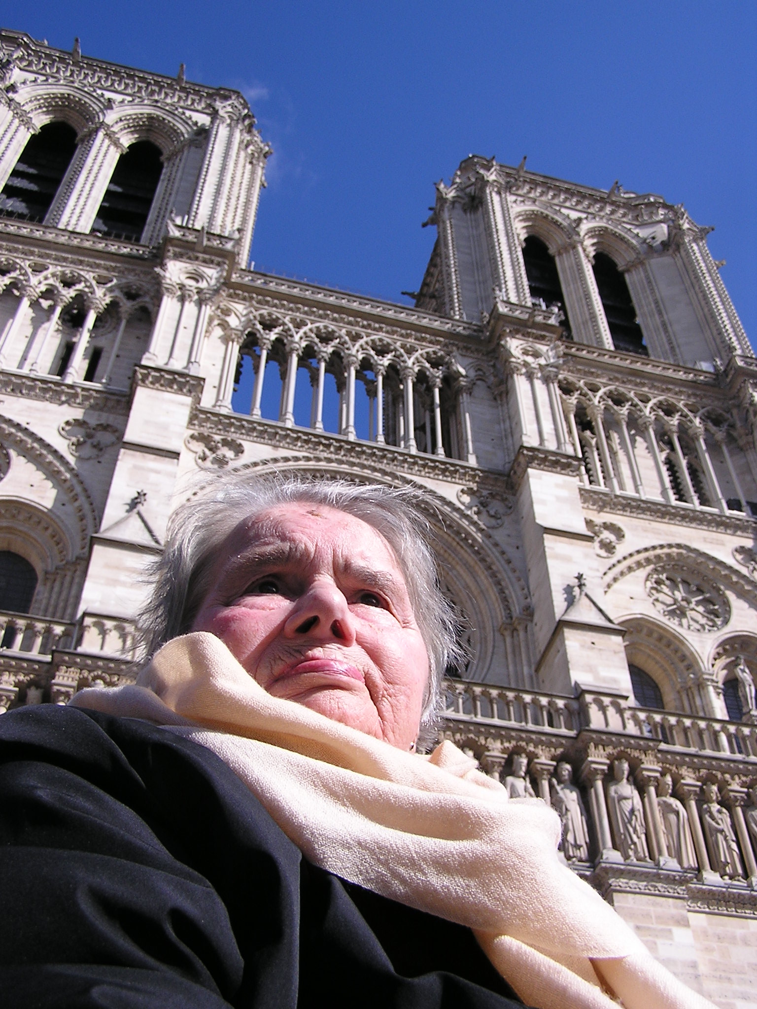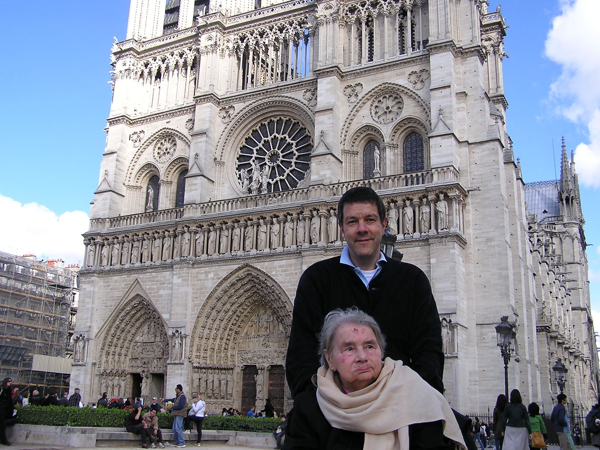 Dopo la mattinata trascorsa a Montmartre, dove alle ore 11,30 abbiamo celebrato la Messa Domenicale, nel pomeriggio ci siamo diretti per la seconda volta in centro di Parigi, il tempo ancora non è buono e un acquazzone ci sorprende all’uscita del parcheggio sulla grande piazza della Cattedrale, una veloce corsa con la carrozzina e ci troviamo all’ingresso di una della più belle chiese del mondo, molto cara a Victor Hugo.(cfr. La fondazione di questa chiesa è davvero anticaPreceduta da un tempio gallo-romano dedicato a Giove, da una basilica cristiana e da una chiesa romanica, la costruzione della cattedrale di Notre-Dame di Parigi iniziò nel 1163, durante il regno di Luigi VII e per volontà del vescovo Maurice de Sully, che non esitò a far demolire la preesistente cattedrale di Santo Stefano, fondata nel 528 da Childeberto I, re dei Franchi. La leggenda vuole che de Sully ebbe una visione della nuova cattedrale e ne tracciò un abbozzo nella polvere all’esterno della chiesa precedente. Per iniziare la costruzione, il vescovo fece abbattere diverse case e costruire una nuova strada per trasportare i materiali necessari per innalzare il nuovo edificio. Alla cerimonia per la posa della prima pietra partecipò anche papa Alessandro III e, a tal proposito, sussistono teorie discordanti: secondo alcuni fu lo stesso papa a porre la prima pietra, mentre, per altri, fu proprio il vescovo Maurice de Sully; mentre Victor Hugo, autore del celeberrimo romanzo Notre Dame de Paris, afferma nel suo libro che la prima pietra fu posata da Carlo Magno in persona. La costruzione fu avviata nel 1163, grazie alle risorse fornite dalla Chiesa e dal sovrano, ai fondi raccolti da de Sully e all’aiuto dei cittadini che lavoravano come fabbri, muratori e carpentieri. I lavori cominciarono dal coro, che fu terminato nel 1182 insieme ai due deambulatori. Tra il 1182 ed il 1190 furono realizzate le campate delle navate e le navate stesse, dopo la consacrazione del coro e dell’altare maggiore. I lavori furono interrotti, lasciando la struttura centrale incompleta. Nei successivi 35 anni, fino al 1225, fu ultimata la navata ed iniziò la costruzione della facciata (1208). Durante l’edificazione della facciata iniziò la lavorazione e la decorazione dei tre portali occidentali, ed in seguito la realizzazione del rosone. La facciata principale, rivolta verso ovest, fu portata a termine intorno al 1250, con le torri campanarie gemelle completate tra il 1225 e il 1250. In quel periodo gli architetti si accorsero che i due portali del transetto, realizzati in stile romanico, male si accostavano allo stile gotico dell’intera cattedrale. La ricostruzione dei due portali laterali e degli altri particolari romanici fu autorizzata dal vescovo Renaud de Corbeil ed ultimata nel 1268. L’architetto Jean de Chelles procedette all’allungamento del transetto, dapprima verso la facciata nord ed in seguito verso quella meridionale. Egli curò quindi la ricostruzione del “portale del chiostro” con il relativo rosone, ed avviò parte del “portale di Santo Stefano”, posto sul lato sud. In seguito alla sua morte, nel 1267, il lavoro fu ultimato da Pierre de Montreuil, già architetto della Sainte-Chapelle. Egli si preoccupò inoltre di avviare il consolidamento degli archi rampanti attorno al coro, che manifestavano segni di cedimento, dovuti all’imponente struttura da reggere. Gli archi furono completati da Jean Ravy, che estese l’opera di rafforzamento all’intero coro ed alle facciate laterali; una volta ultimati avevano, ed hanno tuttora, un’apertura di 15 metri. Intorno alla metà del XIII secolo furono aggiunte una serie di cappelle alla navata e, tra il 1296 ed il 1330, all’abside ad opera di Pierre de Chelles, Jean Ravhoey e Raymond du Temple. E’ una cattedrale dalla lunga e gloriosa storia. All’interno della chiesa dedicata alla Madonna ci disponiamo alla visita. I rosoni e le vetrate conferiscono all’ambiente un tono magico, colori, giochi di ombre e luci, la splendida architettura: tutto ci fa pensare di essere in uno scrigno sacro.  Dopo l’accurata visita decidiamo di trasformare la nostra visita artistico-culturale in momento di preghiera. E’ impossibile non pregare quando Santina è con me, Lei sa trasformare ogni opera d’arte in un autentico strumento di preghiera e contemplazione! Mamma diciamo il rosario? Risponde forte Sì! Ci sediamo e nella calma del pomeriggio ed iniziamo la recita della corona onorando così Nostra Signora di Parigi!  Mi rimarrà nel cuore quel rosario recitato nella cattedrale di Parigi, come la Messa di Natale partecipata a Madrid nella Cattedrale dedicata ancora alla Madonna, o la Messa celebrata da me nella Cattedrale di Santo Stefano a Vienna… quanti ricordi legati alle capitali europee ed alla visita di Santina trasformata in occasione di preghiera e momento di riflessione sul capolavoro ammirato. Il tempo passa velocemente e così ci concediamo una breve passeggiata a l’Ile de la Citè. Camminiamo lungo i bei giardini della Senna (, e giungiamo ad un parco verde posto dove si trova l’abside della Chiesa gotica  e confronta anche il video:  attraversiamo un ponte, vediamo sulla calma Senna un caratteristico battello, entriamo a prendere un aperitivo in un bistrò parigino, è ora di tornare al monastero, il giorno seguente ci attenderà il lungo viaggio di ritorno. Scende la sera su Montmartre e dopo aver recitato la preghiera della notte nella Basilica del Sacro Cuore andiamo a dormire felici  Lunedì 3 Maggio, dopo aver ringraziato e salutato le suore, alle ore 8,30 la nostra macchina lascia il monastero e dopo aver affrontato il traffico caotico di Parigi imbocchiamo l’autostrada alla volta di Lione, da Lione ci dirigiamo a Ginevra dove pranziamo e cambiamo Mamma. Nel pomeriggio – attraversando il suggestivo massiccio del Monte Bianco – giungiamo ad Aosta, da Aosta l’autostrada ci porta a Milano ed alla sera alle ore 19,30