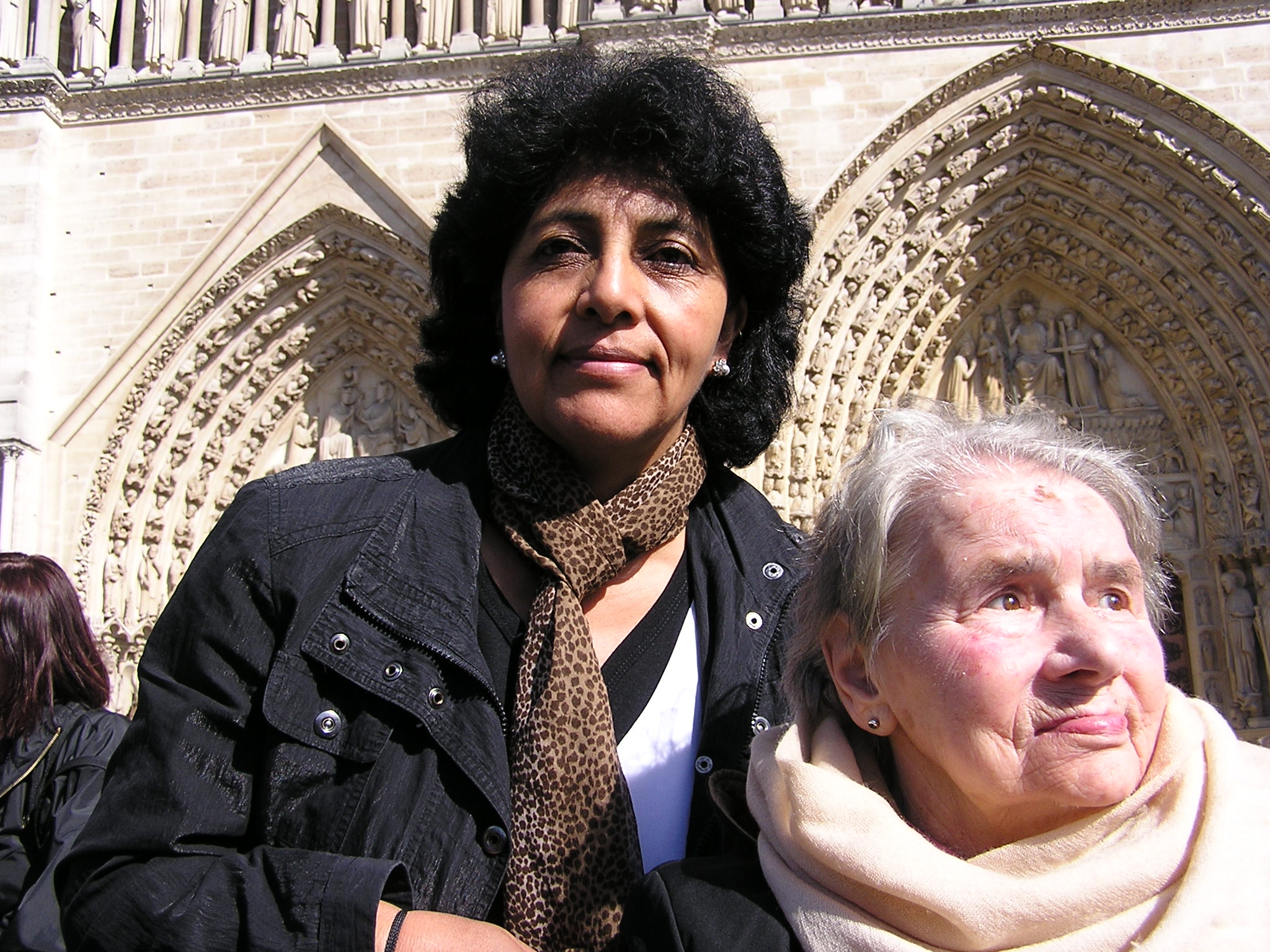 La torre è alta con la sua antenna 324 metri (le antenne della televisione sulla sommità sono alte 20 metri) e pesa 10.000 tonnellate. Per 40 anni è stata la struttura più alta del mondo. Per salire fino in cima vi sono due possibilità: i 1665 scalini oppure due ascensori trasparenti. La struttura è divisa in tre livelli aperti al pubblico, raggiungibili sia con l’ascensore sia con le scale..Siamo saliti Dal piano a noi accessibile gustiamo una vista incantevole: tutta la città appare ai nostri sguardi, giriamo lentamente attorno e ci soffermiamo per numerose fotografie e qualche spezzone video da inserire in Youtube. Guardiamo con grande emozione la città, nel video di youtube, dirò con molta emozione: “Non ci crede nessuno, Olinda!” E Santina sorride felice. L’esperienza di dolore di Santina per noi sempre è stata una sfida a dichiarare che la sua vita poteva ancora avere dignità e insegnare ad abbattere barriere costituite da paure o dubbi: Mamma ha vissuto con intensità la sua vita in questi anni ed è divenuta maestra per tante persone che la reputano una minorata. Proprio con ostinatezza giriamo il mondo per mostrare a tutti che la Santina ha ancora dignità, forza e coraggio per compiere cose grandi, e giungere alla Tour Eiffel ha un valore simbolico enorme: come quella torre sfida il cielo così Santina sfida la sua disabilità e racconta senso e significato a tante persone disperate! Olinda chiama il suo bambino lontano in Perù, è per lei una grande emozione parlare da quel luogo singolare, E’ tempo di tornare al nostro monastero. Il traffico di Parigi sul far della sera è più intenso ed impieghiamo così più di un’ora per giungere dalle suore. Dovremmo partire il 2 Maggio, ma la città è troppo bella e così prendiamo tutti e tre la decisione di partire per Bergamo lunedì 3 Maggio. Domani visiteremo la Cattedrale di Notre Dame!