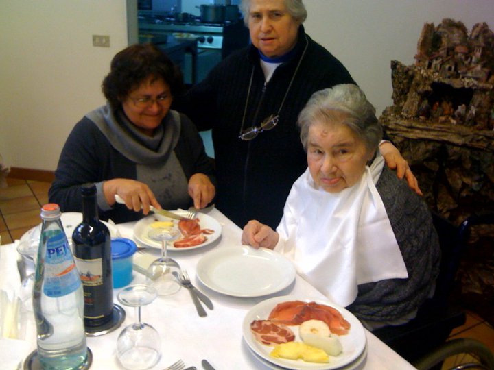 Mia Madre con la sua vita ha sempre cantato a Dio il suo Te Deum. Nel 2005 molte persone avrebbero giurato sulla morte di Santina in una terribile agonia… se fossimo stati in Olanda probabilmente si sarebbe praticata l’eutanasia, invece a Bergamo no, e due coraggiosi medici hanno operato a favore della vita, una vita che qualitativamente, sembra un controsenso, è più ricca oggi che ieri… e così Santina il 29 Dicembre 2010 ha compiuto 85 anni! A Roma ci siamo trovati e abbiamo fatto festa con alcuni amici la sera del 4 Gennaio, a Bergamo avevamo festeggiato con Carolina e la sua famiglia, il pranzo del 29 Dicembre, due feste semplici, ma piene di significato.