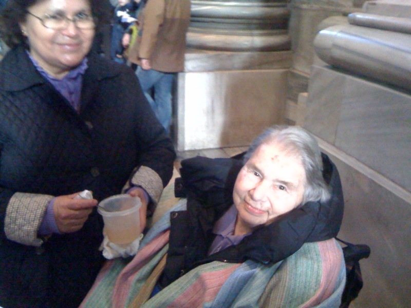 | Domenica, 2 Gennaio 2011 | Santina ascolta il canto dell’Ave Maria di Lourdes e ad un certo punto comincia a cantare il ritornello a voce molto forte, provo grande commozione per questo fatto raccolgo nella preghiera le lacrime che mi sgorgano dal cuore. Visitiamo Roma By night con grande piacere e Santina mostra il suo viso pieno di luce, come ha detto a noi una suora per l’ennesima volta a Loreto. Andiamo a cena da Bernardo e Mamma piena di gioia prende parte alla serata e si mostra molto vivace. |