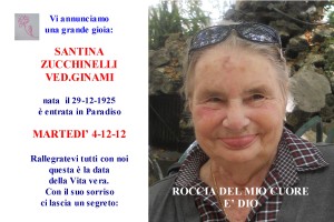 “Grazie Gesù! Questo sepolcro non contiene più un cadavere da duemila anni perché tu sei risorto. Questa sera, per un breve momento esso è tornato ad essere riempito da resti mortali che sono quelli di mia mamma. Quale onore Gesù per la piccola Santina! In duemila anni di storia della Chiesa, quel sepolcro è servito solo per Gesù e, per una manciata di minuti …per la piccola Santina. Nessuno mai ha avuto questo privilegio e ne sono così orgoglioso per Lei, se lo meritava proprio! E allora? Se Santina è morta ed è stata sepolta nel sepolcro di Cristo, se la vita di mia madre è sepolta con Cristo in Dio, allora io credo che anche il Corpo di Santina, come quello di Gesù un giorno rivivrà… e io attendo quel giorno.”
