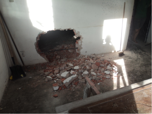 2. Apertura della parete che va da laboratorio allacucina. Due giorni di lavoro. Adesso c´é facile comunicazione tra la cucina e il laboratorio che permette alle donne di lavorare con facilitá.