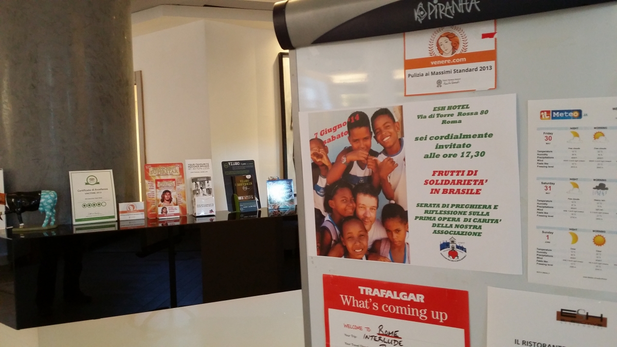 Carissima/o, al ritorno dal primo viaggio di solidarietà vogliamo illustrare ai nostri soci ed agli amici i risultati che abbiamo ottenuto a Novos Alagados, la favela povera di Salvador De Bahia in Brasile, dove abbiamo ristrutturato il centro del Kilombo do Kioio. Ti attendo sabato 7 giugno 2014, presso l’Executive Style Hotel, in via di Torre Rossa 80° Roma, per un momento di fraternità, riflessione e preghiera. Il programma della serata sarà il seguente: