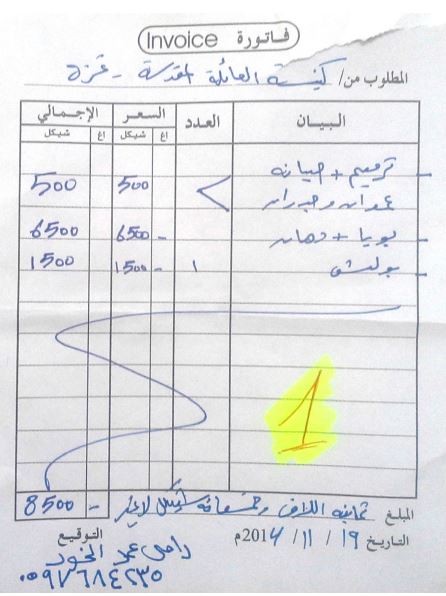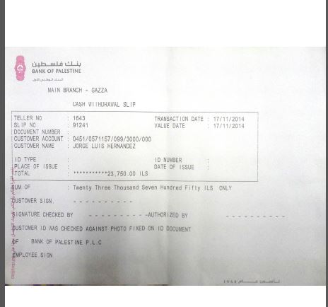 ed ecco puntualmente la ricevuta dalla Parrocchia di Gaza di dove sono finiti i soldi: