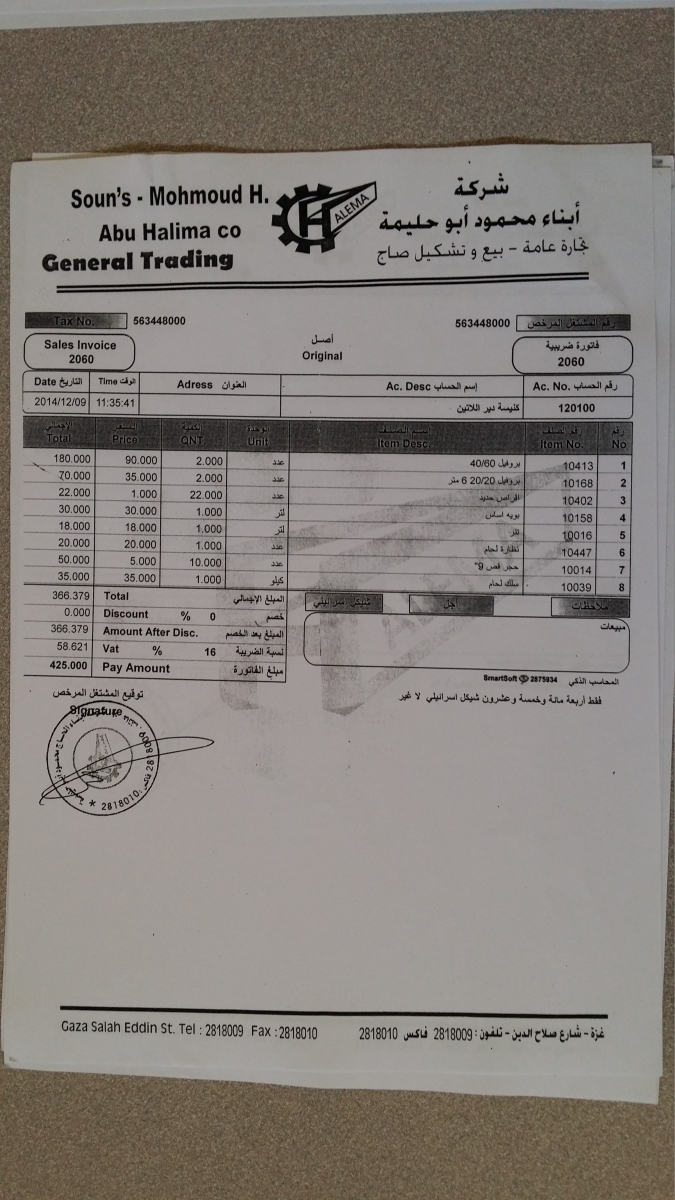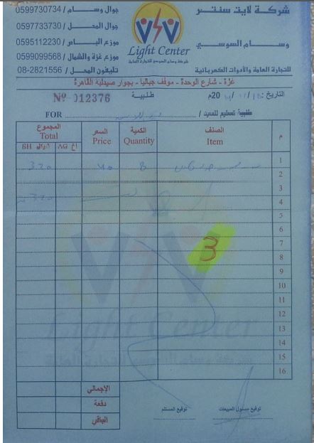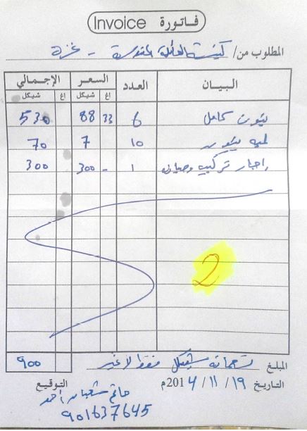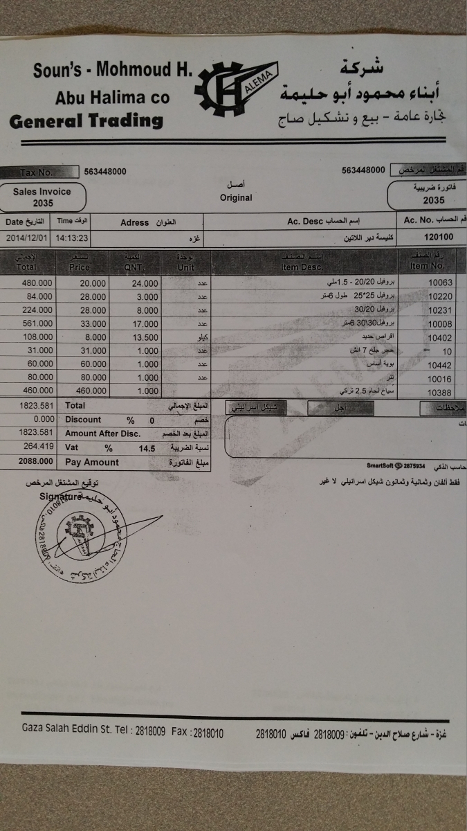 ed ecco le ricevute dei maggiori acquisti operati a Gaza: