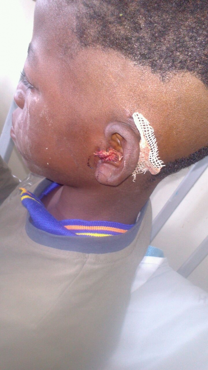 Di questo bimbo Charles vi racconteremo in questa pagina la triste storia. In sintesi possiamo dire che il piccolo era sordo e quindi per questo motivo incapace di parlare e molto chiuso e con gravi disagi psichici. Immaginatevi  la sorpresa quando Jarka del Centro Ushirikiano  della Parrocchia di Msabaha vicino a Malindi in Kenya decise di farlo visitare in Ospedale. I medici rinvennero nelle sue orecchie semi di albero che erano stati messi a lui da piccolino… Non si capisce quale sia il motivo, ma i semi si erano fusi con la cartilagine del timpano e il tentativo di estrarli aveva causato forte infezione, come potrete vedere dalle seguenti fotografie.