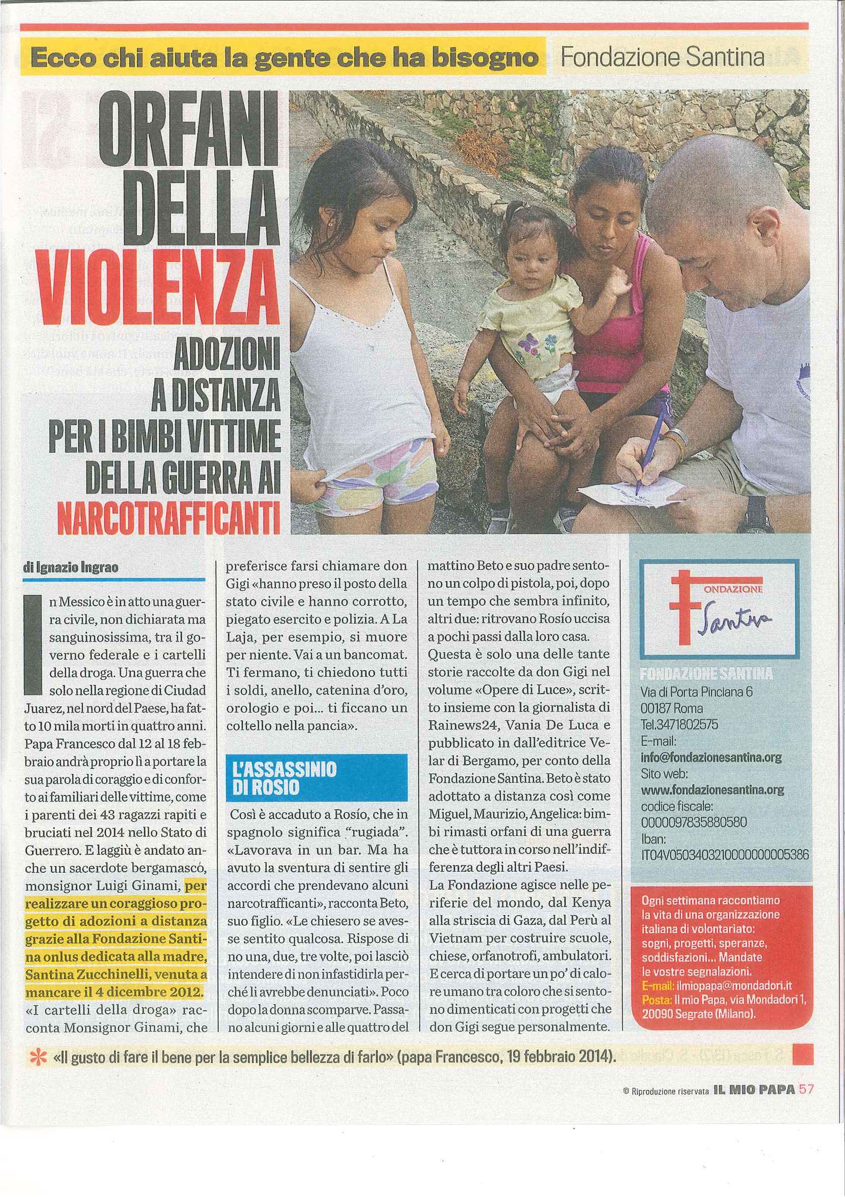 In Messico, nelle terre dei “cartelli della droga”, don Luigi Ginami ha raccolto storie di morte e resurrezione. Nella colonia di La Laja, dove si muore per niente, c’è una croce blu nel cemento che ricorda un’altra croce con la “C” maiuscola. È lì che una madre l’ha piantata per poter piangere suo figlio trucidato dai narcos. Come la sua, altre famiglie straziate aspettano una parola di speranza da Papa Francesco.La Laja vuol dire “pietra”, e non potrebbe esserci nome più appropriato per descrivere questa colonia in pieno territorio dei narcos, tra i cartelli della droga nello Stato di Guerrero. È in luoghi come questo che si può dare un volto concreto alla sofferenza, alla povertà, alla miseria, alla violenza brandita come arma impropria ma di uso quotidiano. È su queste strade polverose e desolate che camminerà anche Papa Francesco, nei suoi giorni da pellegrino che si appresta a vivere nel ventesimo paese straniero toccati in tre anni di pontificato. “Vi porto nel cuore, ora potrò visitarvi e calpestare quella terra benedetta, tanto amata da Dio e tanto cara alla Vergine Maria”, le parole rivolte ai messicani alla vigilia della partenza. Morte e risurrezione, nel cristianesimo, si incontrano, e nel pontificato di Francesco si fanno “carne” nelle periferie di una Chiesa in uscita.Nel settembre 2014, proprio nello Stato di Guerrero, uno Stato tra i più violenti del Messico, sono stati uccisi 43 ragazzi che avevano rubato un pullman. I loro corpi sono stati ritrovati bruciati da un gruppo di narcotrafficanti.“Papa Francesco parla di periferie umane, ma qui siamo oltre la periferia, qui siamo fuori dai confini dell’umano”, annota don Luigi Ginami nel suo libro, “Opere di luce”, scritto a quattro mani con la giornalista di Rainews Vania De luca, in cui racconta il suo “viaggio di solidarietà”: volti e storie vere dalle periferie del mondo, dalla guerra di Gaza al terrorismo di Al Shabaab a Garissa in Kenya, dallo splendore della natura della Andre alle foreste del Perù o del Vietnam, ai colori del Brasile e del Messico, toccando con la mano la carne di Cristo nei poveri e nei sofferenti. Sullo sfondo c’è la Fondazione intitolata alla madre di don Gigi, Santina Zucchinelli, nata in sua memoria per superare la semplice filantropia della raccolta fondi o della realizzazione di progetti: l’obiettivo è “avviare percorsi di solidarietà e condivisione, anche piccoli, e coinvolgere persone, favorendo incontri, reti di conoscenze e amicizie”, per diventare capaci di “reggere anche lo sguardo dei poveri”, come scrive monsignor Guillermo Karcher, cerimoniere pontificio dell’arcidiocesi di Buenos Aires, nella prefazione del volume.In Messico, i protagonisti sono uomini, donne e bambini travolti dalla storia e in cerca di un riconoscimento della propria dignità.