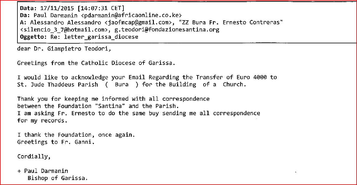 II. MAIL AL VESCOVO DI GARISSA DEL 12 OTTOBRE 2015