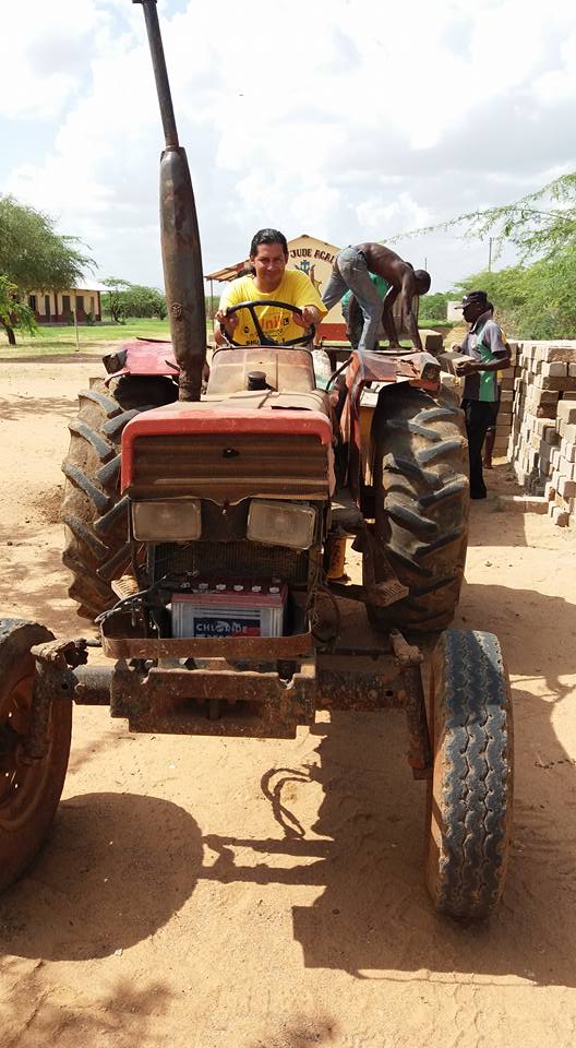 Dalla relazione i lavori procedono bene, ecco Padre Ernesto sul trattore: