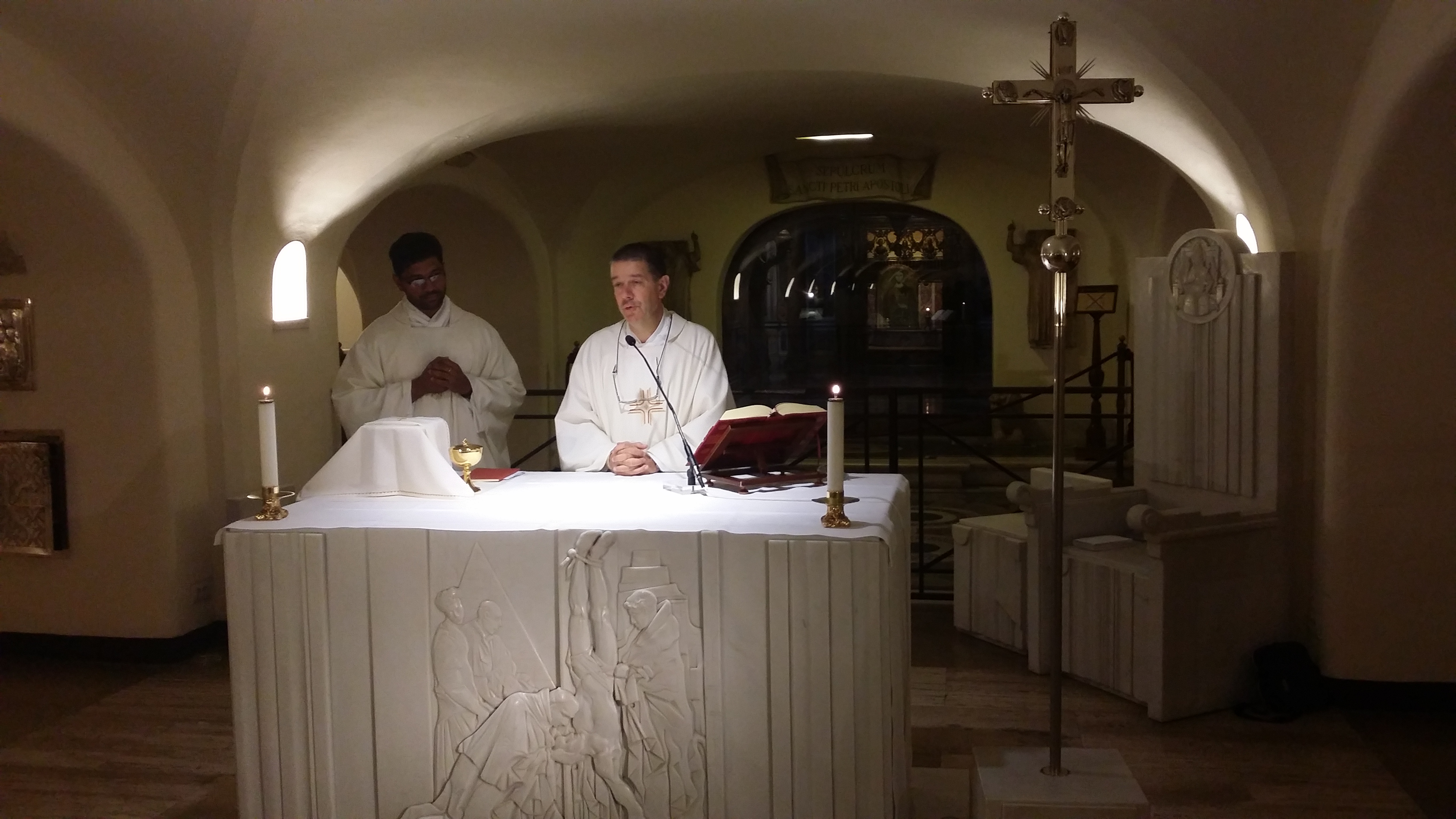Il nostro incontro è stato caratterizzato dalla preghiera. Nell’Anno della Misericordia abbiamo avuto l’onore ed il privilegio di vivere una liturgia radicalmente semplice ed intima ma in luoghi di alto significato. La Tomba dell’Apostolo Pietro è stato il luogo suggestivo dove abbiamo celebrato la Messa: in sagrestia, scherzando i sagrestani mi dicono “Monsignore che onore poter celebrare all’altare della Tomba di Pietro, ma Lei è un raccomandato?” Io in modo sicuro, con un sorriso rispondo: “Io godo di una raccomandazione molto in alto…” Tutti aspettano di sentire il nome, lascio alcuni secondi di silenzio, in cui l’uomo si interroga su chi sia il mio sponsor… e poi rispondo “Io in paradiso ho la Santina!” Una pacca sulla spalla e un sonoro e benevolo sorriso sono la risposta del sagrestano. Iniziamo la celebrazione eucaristica alla quale ci siamo preparati con un ottavario di preghiera e la confessione sacramentale per avere l’indulgenza plenaria legata al passaggio della porta santa. Durante la messa sobria, senza molti canti con i paramenti bianchi, vedo i miei fedeli assorti. E’ l’occasione per ricordare e celebrare anche a Roma i miei 30 anni di Messa. Che bella occasione, se il 21 giugno ero con assassini e narcotrafficanti in un carcere di massima sicurezza oggi celebro nella semplicità e con una modesta immaginetta che viene dal Perù i miei 30 anni di sacerdozio. Sono convinto che “Nessuno è profeta nella sua patria!” come ci dice Gesù nel Vangelo. “Chi se ne frega se non celebro nella mia parrocchia di Città alta, se nessuno dei miei fa auguri…” Sono contento di celebrare con loro e di vivere con loro questo momento tanto bello per un sacerdote! E sono sicuro che quei 35 davvero pregano per me. Sto intessendo questo racconto del 18 luglio con cronaca, riflessioni sulla vita associativa e sulla mia vita sacerdotale. I miei fedeli ricevono con grande commozione l’immaginetta con il Signore dei Miracoli, e io rivivo con loro la grande emozione che ho vissuto nel mio amato Perù! Quando mi prende sconforto vado con il ricordo a Conima, Garissa, Lango Baya o Salvador de Baja… e mi passa ogni sconforto. La Messa termina e poi iniziano altri momenti liturgici di grande impatto. Improvvisiamo una modesta processione, siamo solo poche persone… forse con qualche ritardatario siamo a quaranta. Percorriamo la basilica al livello delle tombe dei papi e poi, recitando il rosario usciamo fuori e ci troviamo davanti alla porta santa. Che emozione! Anche questa volta una grande emozione, come quella provata nel carcere del Perù o del Kenya o a Gerusalemme, porte sante ricche di storie diverse, ma questa volta l’aspetto più bello è stato quello comunitario! Non ci si salva da soli: questo è un dogma della nostra fede, entrare uno per uno, ma come comunità: attraversare quella porta santa come Associazione Amici di Santina per me è stato inebriante. La salvezza non è una ascetica conquista personale, ma è una conquista comunitaria: sono convinto che entreremo in Paradiso dandoci la mano, non in modo isolato. “Signore Gesù abbi pietà di me peccatore!” Questa frase è stata pronunciata da ciascuno di noi baciando una croce che è sugli stipiti della porta santa. …e io ho provato intensa commozione, forte commozione, un momento di paradiso. Dobbiamo fare del bene agli altri, ma prima di questo dobbiamo fondare la nostra attività in Gesù, come abbiamo fatto quel giorno. Attraversano con commozione la porta Santa: Filippo, forse il più piccolo, Franca, Giampietro, Francesca, Manuel, Maurizio… tra i soci fondatori, poi Edoardo il più giovane socio di 20 anni, arrivato poverino da Milano per la sua granitica convinzione e amore per quanto facciamo, Emanuele e Marzia da Bergamo, la zia di Pasquale inferma: un gruppo di persone compatto e convito stava attraversando la Porta della Misericordia e lo facevano spinti da Santina. Io penso che Lei dal paradiso era felicissima di questa nostra preghiera, Lei che tanto pregava durate la sua vita e la sua malattia. Dopo questo momento, succede per noi un’altra cosa meravigliosa. Ci aprono le porte delle transenne nella navata centrale… e recitando il rosario saliamo fino all’altare della Confessione. Mai successo nella mia vita: recitando il rosario e sotto gli occhi di migliaia di turisti e pellegrini curiosi saliamo lentamente e con vera commozione la grande basilica per giungere all’altare che ricorda il martiro di Pietro. Il Signore oggi ci ha fatto dei regali stupendi: recitiamo il Credo, ultima preghiera richiesta per lucrare l’indulgenza: confessione sacramentale, Comunione, PaterAve Gloria e Credo… Con la benedizione finale usciamo da quel paradiso con tanta pace nel cuore e ci tuffiamo nel traffico caotico di Roma: una conduttura di acqua è saltata su via Gregorio VII. Arriveremo in albergo con un’ora di ritardo ma con profonda pace nel cuore.