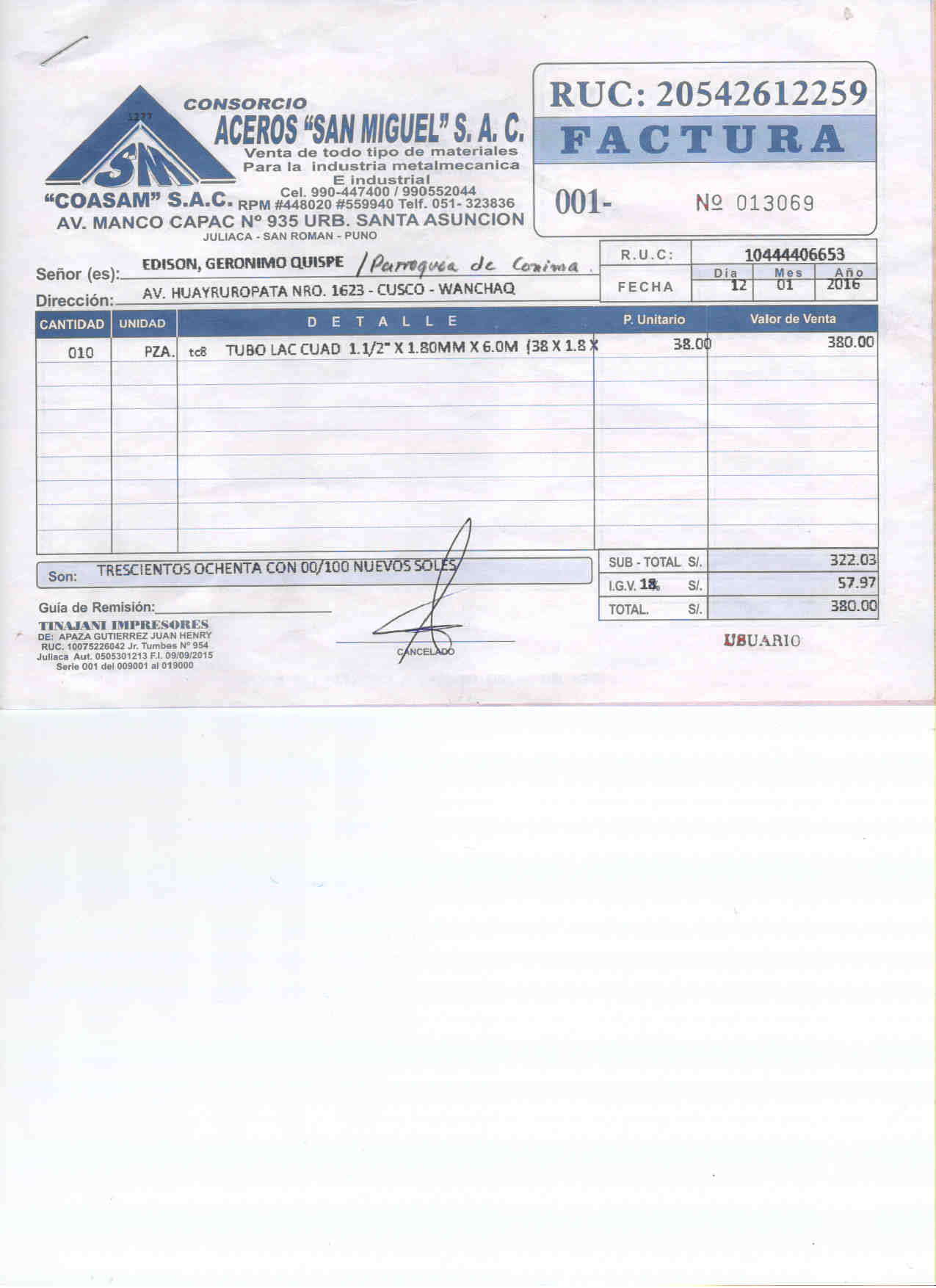 In occasione del Decimo Viaggio di Solidarietà della Nostra Associazione Amici di Santina Zucchinelli ONLUS – svoltosi dal 14 al 25 giugno 2015 – ci siamo incontrati per inaugurare il pavimento della chiesa parrocchiale di Conima il 21 giugno 2015 e con lettera datata 16 luglio 2015 il Rev.do Parroco P. Walter Valencia Uscamayta, con il consenso e approvazione del Vescovo Mons. José Maria Ortega Trinidad ha formulato al nostro Direttivo la domanda di Euro 9.200 per poter rifare la copertura del tetto nella medesima chiesa di San Michele Arcangelo in Conima. Sono lieto di annunciare che in data 18 Luglio 2015 il Direttivo, riunito nella Sede di Roma della nostra Associazione, all’unanimità ha deciso di stanziare l’intera somma da voi richiesta per un totale di Euro 9.200.
