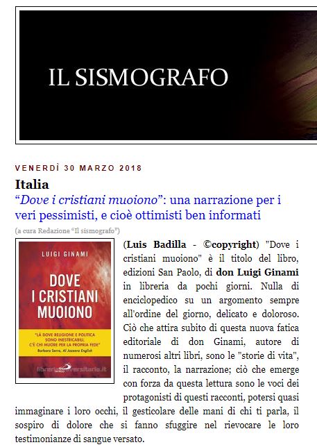 RECENSIONE: “DOVE I CRISTIANI MUOIONO”: UNA NARRAZIONE PER I VERI PESSIMISTI, E CIOÈ OTTIMISTI BEN INFORMATI (A CURA REDAZIONE “IL SISMOGRAFO” 30.03.18)