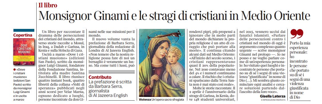 RECENSIONE: LE STRAGI DEI CRISTIANI IN MEDIO ORIENTE. DI GISELLA LATERZA (CORRIERE DELLA SERA EDIZIONE DI BERGAMO 27 febbraio 2018)