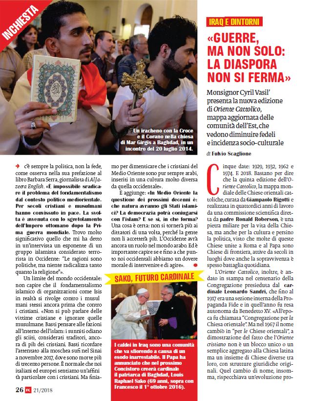 Il ministro degli esteri di Saddam Hussein, ad esempio, Tariq Aziz, era cristiano. Ora si pensa che i cristiani in Iraq non siano più di 258.000. L’espansione del cosiddetto “Stato Islamico” ha ovviamente inciso su questo esodo, ma i cristiani iracheni hanno cominciato ad essere presi di mira poco dopo la caduta di Saddam Hussein, dieci anni prima l’impennata di ISIS: uno dei primi segni che la società di quel paese stava iniziando a sgretolarsi, insieme all’escalation di violenza settaria fra musulmani sunniti e sciiti.