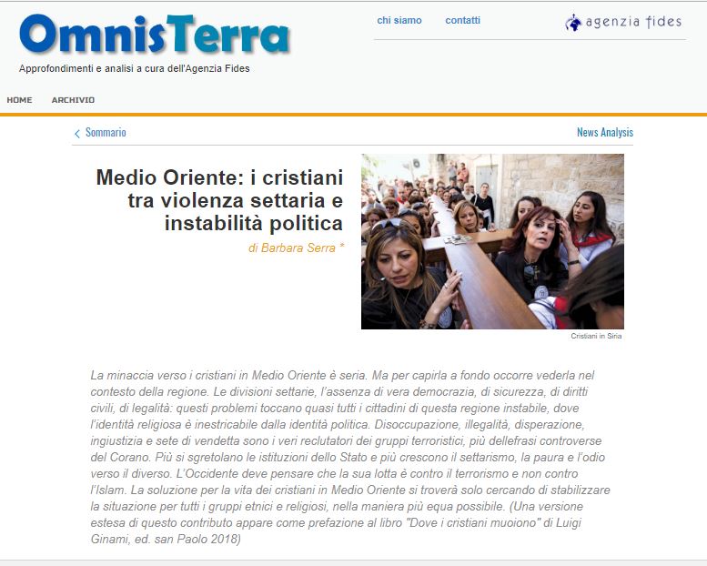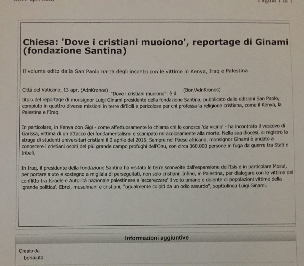 ADNKRONOS. CHIESA:”DOVE I CRISTIANI MUOIONO”, REPORTAGE DI GINAMI (FONDAZIONE SANTINA) 13 APRILE 2018