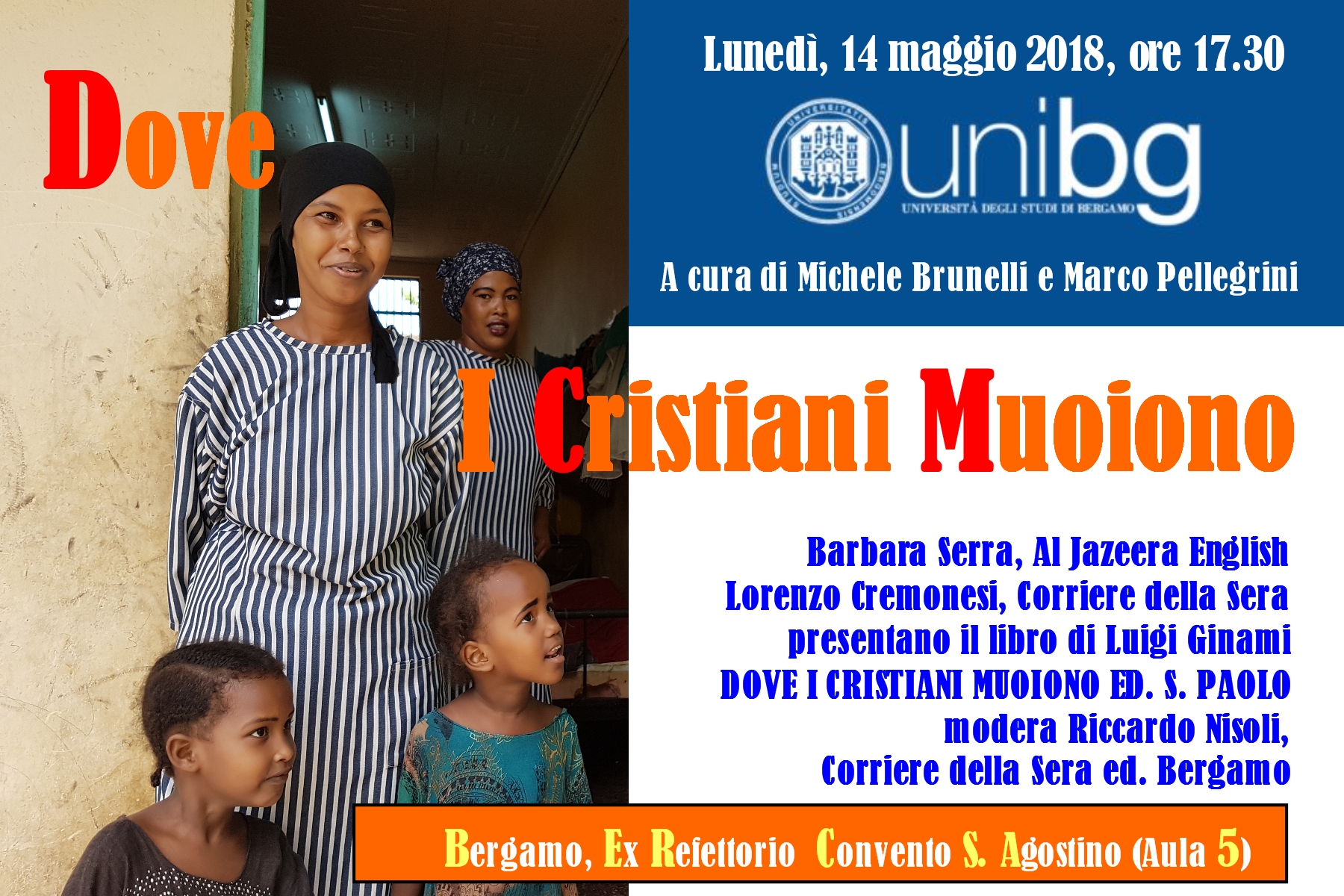Noi non vogliamo dire che sono solo i cristiani a morire ma che purtroppo molti innocenti, spesso e più dei cristiani, i musulmani, muoiono a causa di qualche persona invasata che in nome di Dio uccide. E questa è la più grande bestemmia”. Il libro sarà presentato nell’aula magna della ex chiesa di Sant’Agostino dell’Università di Bergamo lunedì 14 maggio, alle 17. Interverrà anche Barbara Serra, giornalista di Al Jazeera English, che ha curato la prefazione del testo: “La guerra ha decimato le antiche comunità cristiane in due paesi: l’Iraq e la Siria – si legge -. L’Iraq nel 2003, prima della invasione americana, aveva all’incirca un milione e mezzo di cristiani, che vivevano relativamente liberi da discriminazione. Ora si pensa che i cristiani in Iraq non siano più di 258.000. Quando la Siria fu creata nel 1920, un terzo della popolazione era cristiana. Ora si pensa ci siano meno di 900.000 cristiani per una popolazione di 18 milioni di persone”.