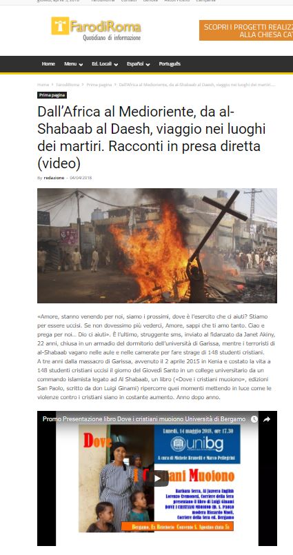 RECENSIONE: A TRE ANNI DAL MASSACRO DI GARISSA UN LIBRO RICORDA L’AUMENTO DELLE PERSECUZIONI CRISTIANE DI FRANCA GIANSOLDATI (IL MESSAGGERO 02.04.18)
