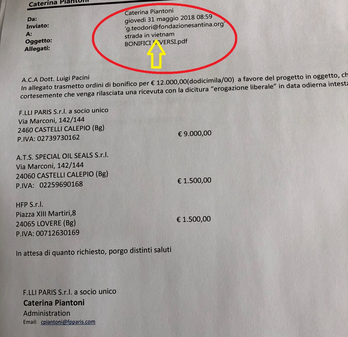 Dopo aver visto i brillanti risultati ottenuti dalla Caritas di Hanoi nella costruzione di tale strada, il Tesoriere Luigi Pacini ha provveduto a bonificare alla Caritas di Hanoi l’intera somma: