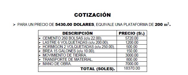 Il costo totale dell’opera è di Euro 6000. Tale progetto ci è stato dato durante il trentesimo viaggio di solidarietà in Perù dal 24 giugno al 5 luglio 2018.
