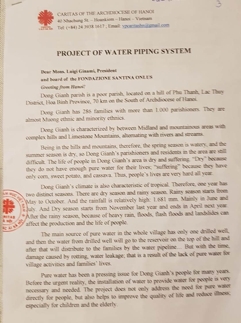 in occasione del recente Viaggio di Solidarietà della nostra Fondazione Santina ONLUS – svoltosi dal 12 al 19 agosto 2018 è stata formulata al nostro Consiglio di Amministrazione la richiesta di 10.000 Euro per poter realizzare una pompa di acqua per un villaggio rovinato in Vietnam.