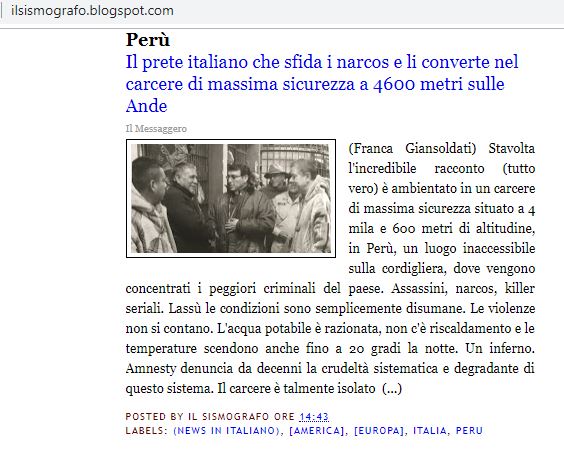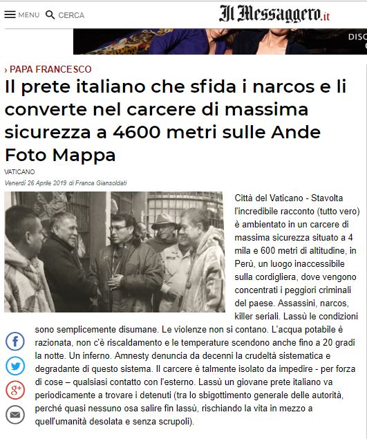 IL PRETE ITALIANO CHE SFIDA I NARCOS E LI CONVERTE NEL CARCERE DI MASSIMA SICUREZZA A 4600 METRI SULLE ANDE (IL MESSAGGERO)