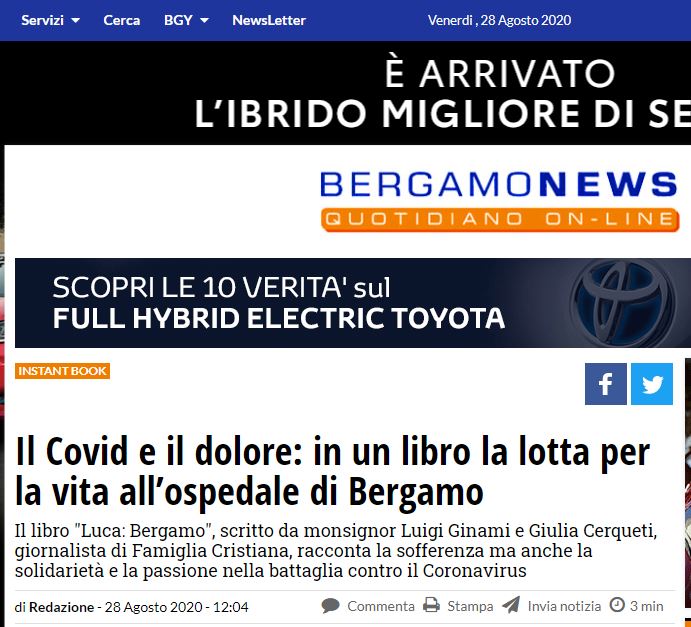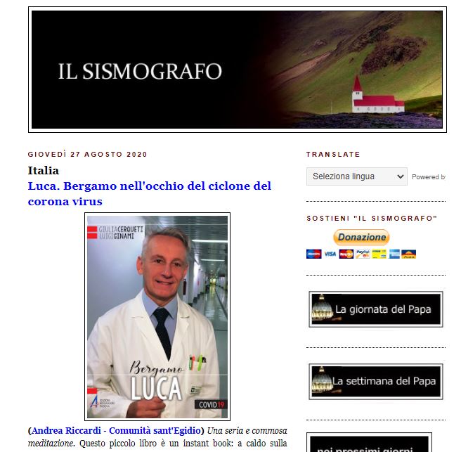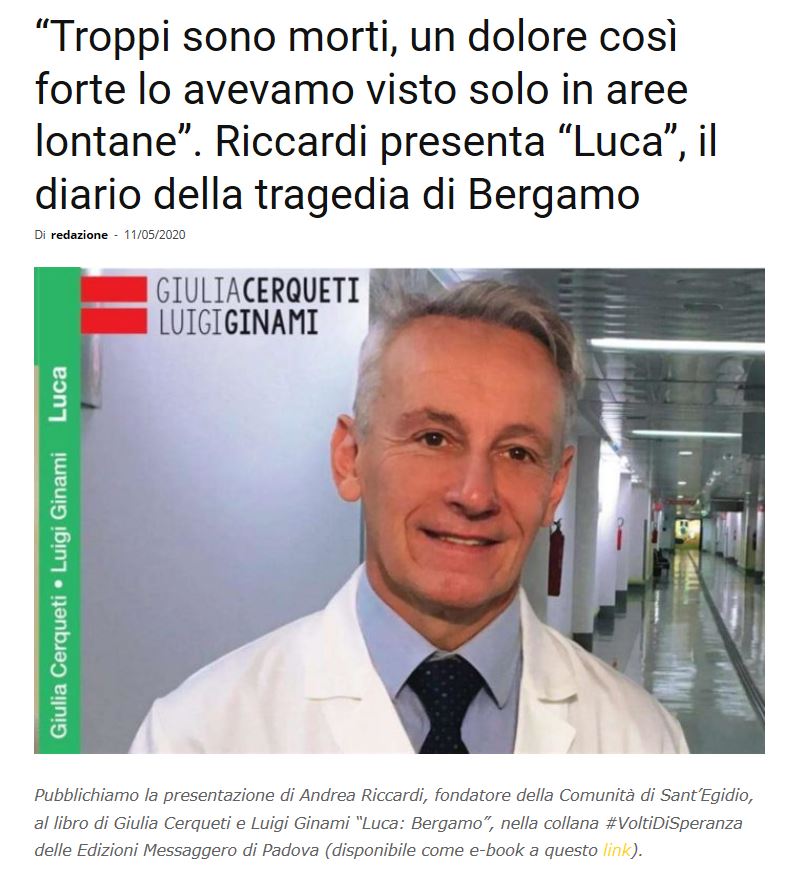 IL LIBRO “LUCA: BERGAMO NELL’OCCHIO DEL CICLONE DEL CORONAVIRUS” RILANCIATO CON LA PRESENTAZIONE DI ANDREA RICCARDI DAL SITO “IL SISMOGRAFO” IL 27 AGOSTO 2020 ALLE ORE 15,22)