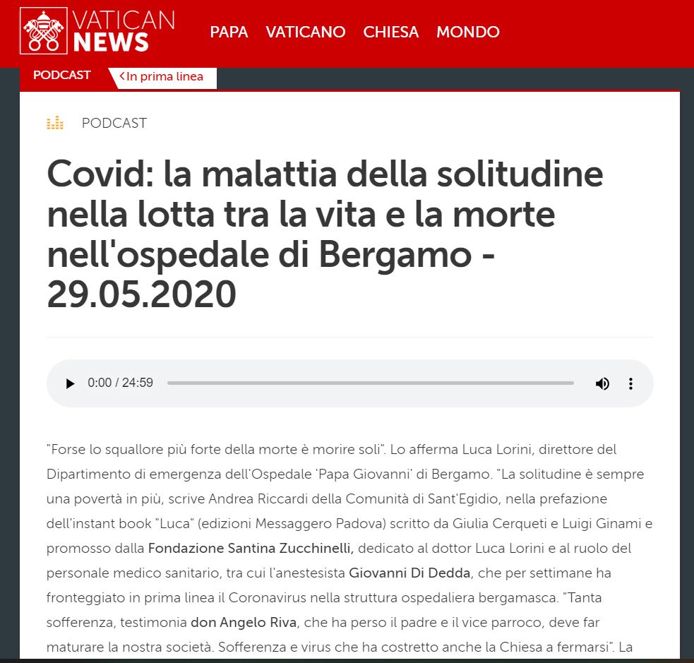 COVID-19: IN UN LIBRO LA LOTTA PER LA VITA DEI MEDICI DELL’OSPEDALE DI BERGAMO. VATICAN NEWS 25 LUGLIO 2020