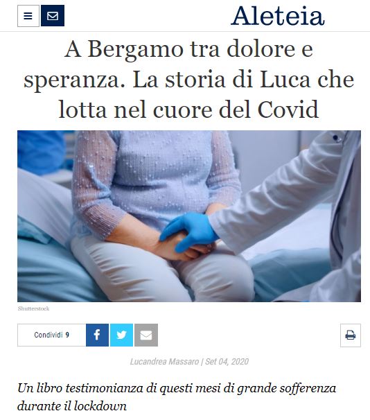 A BERGAMO TRA DOLORE E SPERANZA. LA STORIA DI LUCA CHE LOTTA NEL CUORE DEL COVID. UN LIBRO TESTIMONIANZA DI QUESTI MESI DI GRANDE SOFFERENZA DURANTE IL LOCKDOWN. (ALETEIA.ORG 4 SETTEMBRE 2020)