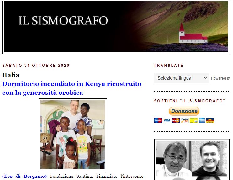DORMITORIO INCENDIATO IN KENYA RICOSTRUITO CON LA GENEROSITA’ OROBICA (IL SISMOGRAFO ORE 31 OTTOBRE 2020 10,00)