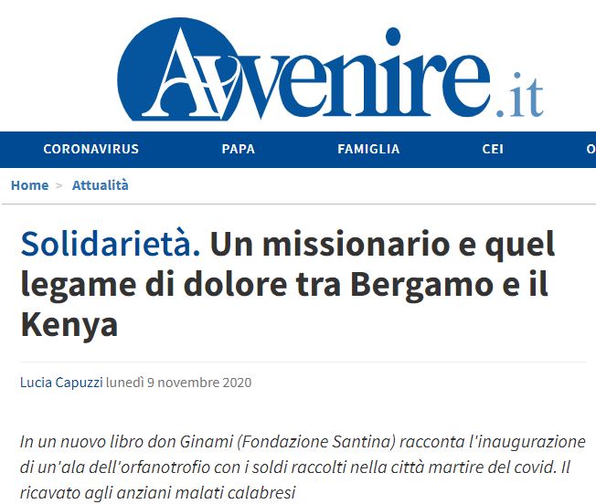 SOLIDARIETÀ. UN MISSIONARIO E QUEL LEGAME DI DOLORE TRA BERGAMO E IL KENYA (AVVENIRE 09.11.2020)