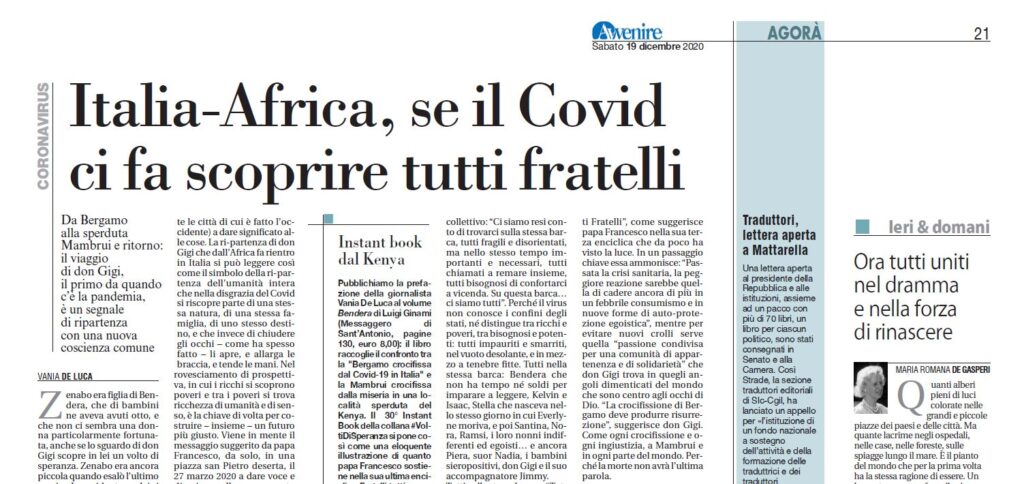ITALIA-AFRICA, SE IL COVID CI FA SCOPRIRE TUTTI FRATELLI. AVVENIRE, SABATO 19 DICEMBRE 2020 PAGINA 21