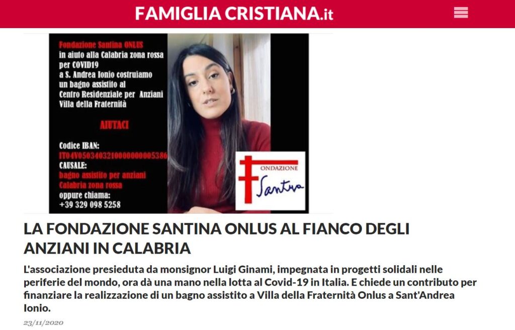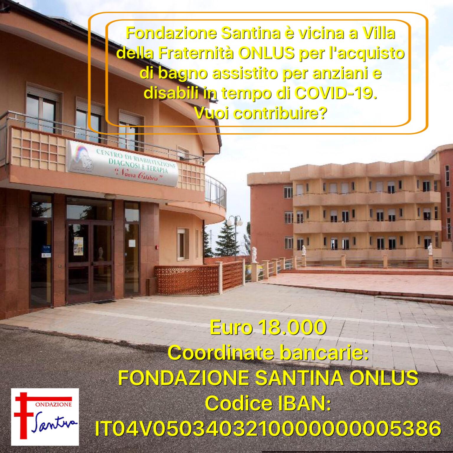 Fondazione Santina continua la lotta contro COVID19 ed in Calabria, divenuta zona rossa, finanzia un bagno assistito per anziani a Villa della Fraternità ONLUS a S. Andrea Ionio.