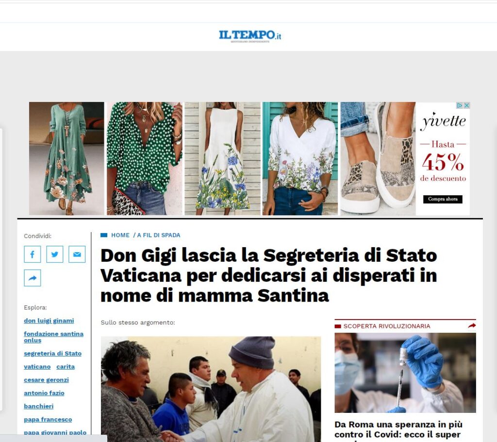 II. DON GIGI LASCIA LA SEGRETERIA DI STATO VATICANA PER DEDICARSI AI DISPERATI IN NOME DI MAMMA SANTINA (IL TEMPO, DIRETTORE FRANCO BECHIS 18.05.2021)
