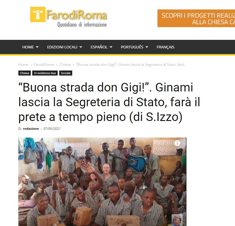 IV. BUONA STRADA DON GIGI!”. GINAMI LASCIA LA SEGRETERIA DI STATO, FARÀ IL PRETE A TEMPO PIENO (SALVATORE IZZO IL FARO DI ROMA 07.05.2021)