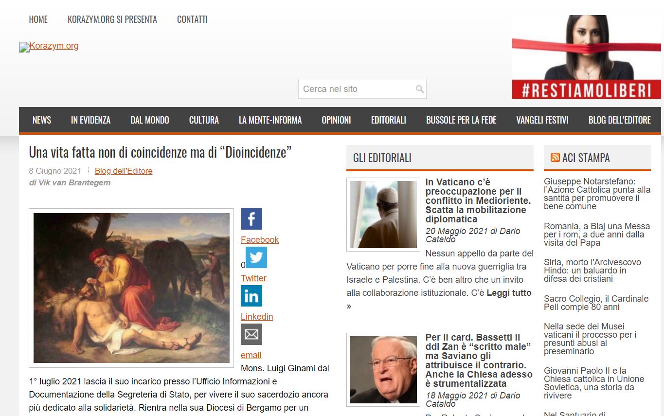 V. DAL VATICANO ALLA DIOCESI DI BERGAMO, LA NUOVA VITA DI MONSIGNOR LUIGI GINAMI (GIULIA CERQUETI – FAMIGLIA CRISTIANA 07.05.2021)