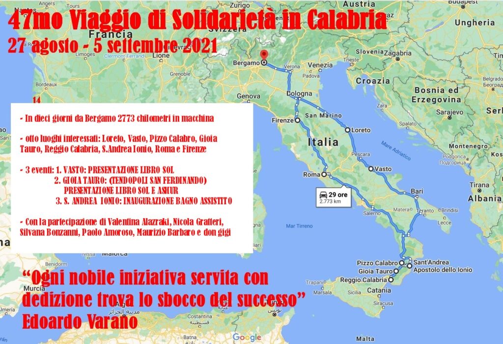Ho speso molte pagine per raccontarvi la mia vita personale oggi, ma non vorrei darvi l’impressione di essere stato in questo tempo con le mani in mano riguardo la nostra Associazione e Fondazione! Siete pronti? Allora iniziamo! Vi ricordate i due venezuelani che abbiamo aiutato nel trovare casa e nell’arredarla? Ne sa qualche cosa Silvia, Silvana, Mino e Franca… Siamo stati a trovarli, sono contenti ed il prossimo 24 agosto si ricongiungeranno con i figli negli Stati Uniti, proprio questa sera hanno invitato me e Silvana a cena! Hanno scritto tre letterine bellissime una al Vescovo di Bergamo, una al Vicario Generale ed una a me in cui ringraziano tutti per il grande aiuto dato. Dal Perù ho portato 15 adozioni a distanza, abbiamo inaugurato un’ala del seminario a Puerto Maldonado, abbiamo promesso di rifare per il prossimo anno la cucina ed il refettorio dei seminaristi; in oltre abbiamo assicurato un impianto di illuminazione nel nostro asilo a Villa San Roman sulle Ande per il prossimo anno 2022. Stanno partendo le adozioni a distanza in Iraq con qualche difficoltà ad Erbil, dovremmo inviare euro 15.000 per un generatore di corrente a settembre; abbiamo inviato Euro 10.000 in Kenya per concludere l’asilo nido nell’Orfanotrofio di Mambri dove andrò a metà settembre per l’inaugurazione. Abbiamo inviato Euro 5000 ad Acapulco in Messico per concludere l’inaugurazione di una palestra nel carcere di Las Cruces, dove andrò per novembre per l’inaugurazione. Siamo poi alla vigilia della partenza per Vasto e la Calabria. Verrà con me Silvana che come Membro del Consiglio di Amministrazione di Fondazione Santina taglierà il nastro con Nicola Gratteri a Sant’Andrea Ionio ed inaugurando così il bagno assistito per anziani. In 10 giorni dal 27 agosto al 5 settembre percorreremo in otto tappe 2773 chilometri con tre eventi importanti: la presentazione a Vasto il 28 agosto di SOL, con Valentina Alazarki, la presentazione dei libretti Ashur e Sol nel comune di San Ferdinando nella Piana di Gioia Tauro, e l’inaugurazione del bagno assistito. Visiteremo Loreto, Vasto, Pizzo Calabro, la Tendopoli di San Ferdinando a Gioia Tauro dove incontreremo Celeste Logiacco, Reggio Calabria dove incontreremo lo Chef Cogliandro, poi Sant’Andrea Ionio e ancora Pompei, Roma e Firenze per giungere a Bergamo e condividere insieme la gioia con gli amici. Oltre a Silvana che mi accompagnerà per tutto il viaggio, questa volta nel 47mo viaggio di solidarietà saranno presenti anche Maurizio Barbaro, Paolo Amoroso, Valentina Alazraki, Sandra Tana… tutti appartenenti alla nostra Associazione! Dunque una nutrita delegazione per un viaggio fuori di testa in cui i secondi saranno calcolati allo spasimo. Devo ringraziare Sandra Tana, Franca Scordo, Marina Voci e Andrea Frassoldati per l’ospitalità gratuita che ci hanno fornito per l’alloggio mio e di Silvana! Tornato dal 47mo viaggio il 5 settembre il 15 settembre mi butto su un volo per il Kenya dove non vedo l’ora di riabbracciare la mia piccola Santina! Ma in queste settimane trascorse a Bergamo in questa nuova vita non è mai mancata la preghiera. Domenica 8 agosto abbiamo recitato insieme il rosario.