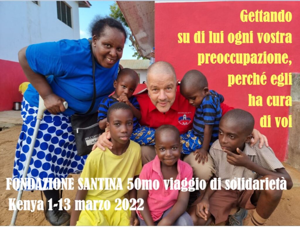 Vi chiederete se ho lasciato l’Africa a mani vuote: certo che no! Nel mio zaino blu ci sono alcuni progetti che ora vi dico nella speranza che possiate aiutarmi a realizzarli nel prossimo anno: all’orfanotrofio di Mambrui ho promesso per il 2022 pannelli solari per avere sempre corrente elettrica, soprattutto per i frigoriferi dove si conservano le medicine, preziose per i bambini sieropositivi. La mancanza di elettricità spesso lascia i piccoli senza necessarie cure per la sopravvivenza. Il costo dei pannelli solari? Euro 11.000 Nella Missione di Bura Tana nella diocesi di Garissa, dove gli islamisti uccidono c’è una piccola scuola cattolica difesa con le unghie e con i denti dal guatemalteco padre Ernesto. La scuola ha bisogno di ristrutturare la cucina e il refettorio, per un costo di euro 6.000: come faccio a dire di no a questo grande prete che vive in situazioni estreme? E infine c’è la missione di Msabaha dove, dopo aver costruito il pozzo e installato la cisterna d’acqua, mi chiedono di costruire un muro di cinta per proteggere i piccolini e la scuola da ladri e dai fanatici islamisti: forse spesso ci dimentichiamo che vivere da cristiani in questi luoghi è rischioso! Come faccio a dire di no? Il costo è di 6.400 euro. Se avete fatto i conti, arriviamo a un totale di 23.400 euro. Sapete quanti ne ho a disposizione? Zero! Ma io ho comunque promesso, perché so che ci sei tu che hai letto fino a questo punto il libretto di Halima. Alla gente non chiedo soldi, chiedo un’altra cosa: chiedo il cuore! Se ci dai il tuo cuore, anche un solo euro ha un valore infinito. Pensaci ed aiutaci … lascio tutto al tuo buon cuore!
